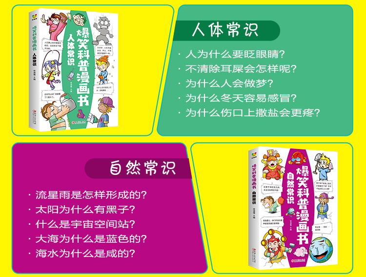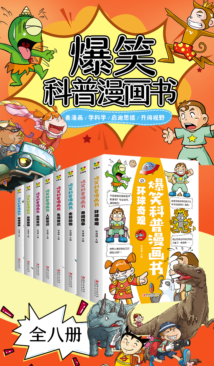 爆笑科普漫画书全套8册 儿童漫画读物小学生三四五六年级必读的课外书老师推荐阅读书籍适合七八8-10岁以上孩子看的搞笑绘本故事书