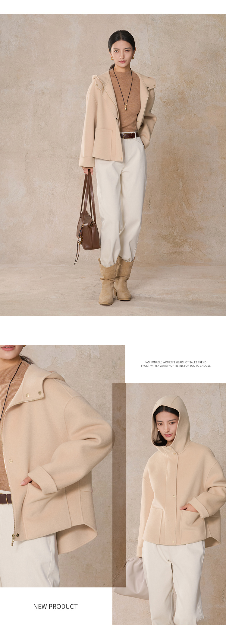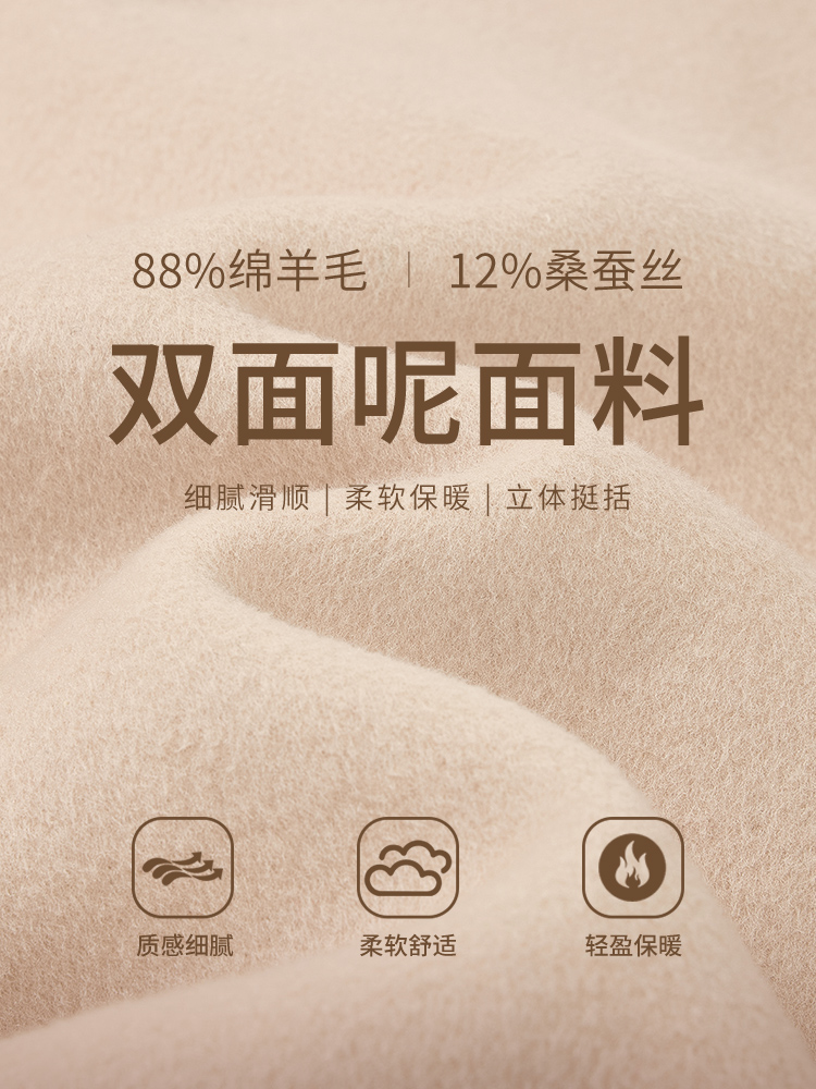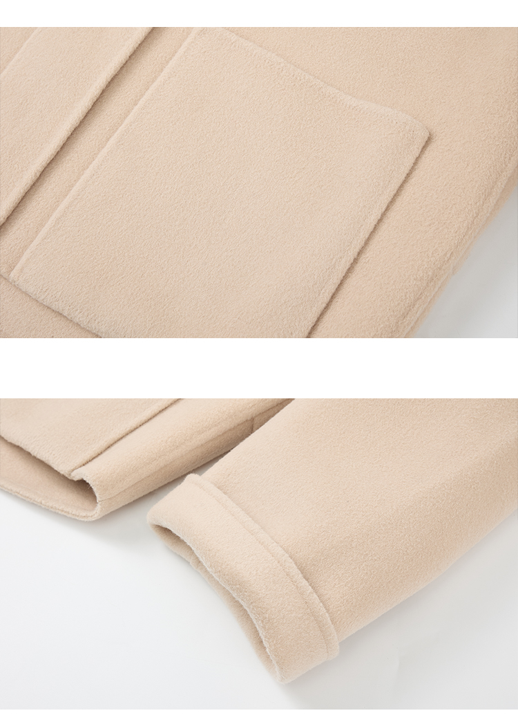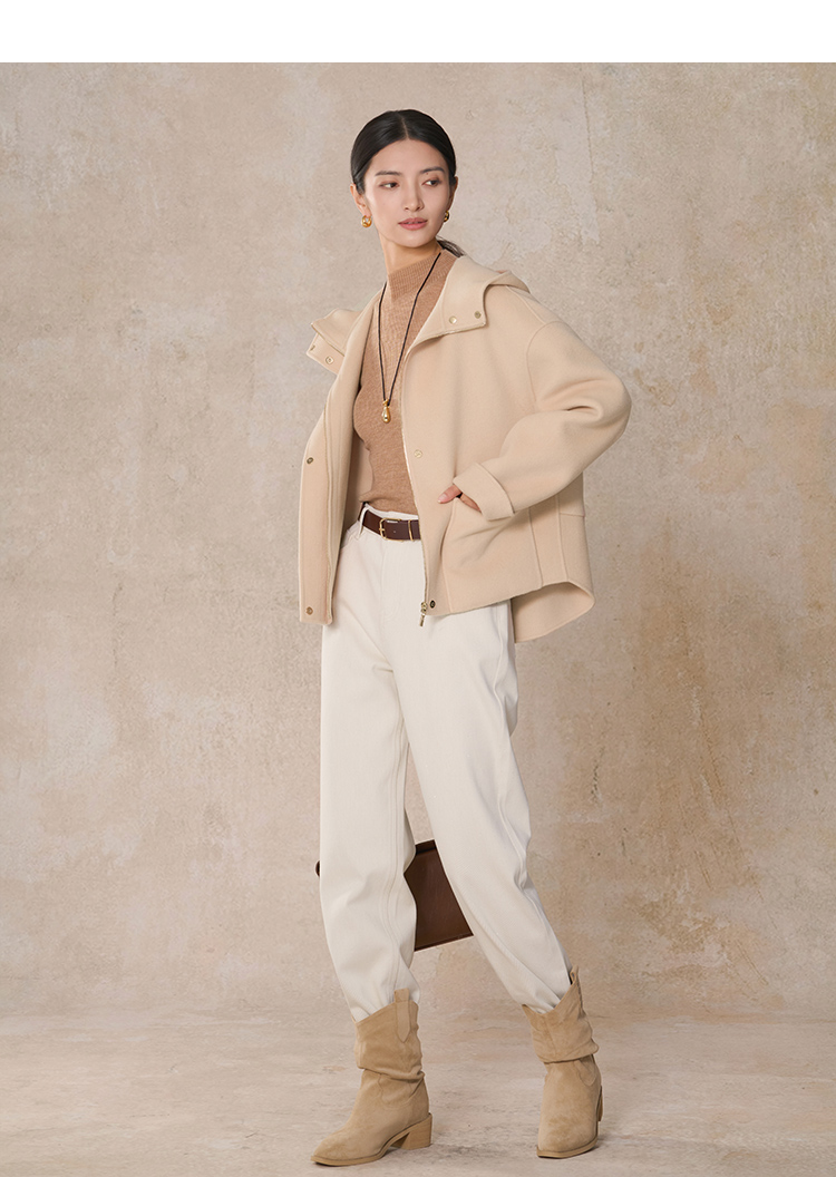 【商场同款】CNC5012 “ 轻氧短大衣 ” 羊毛蚕丝混纺触感细腻高级 驼色连帽短大衣