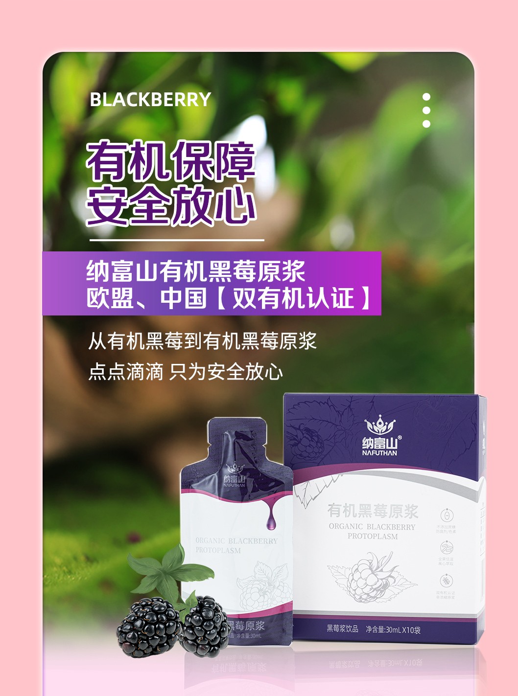 纳富山有机黑莓原浆袋装 30ML*30袋/箱