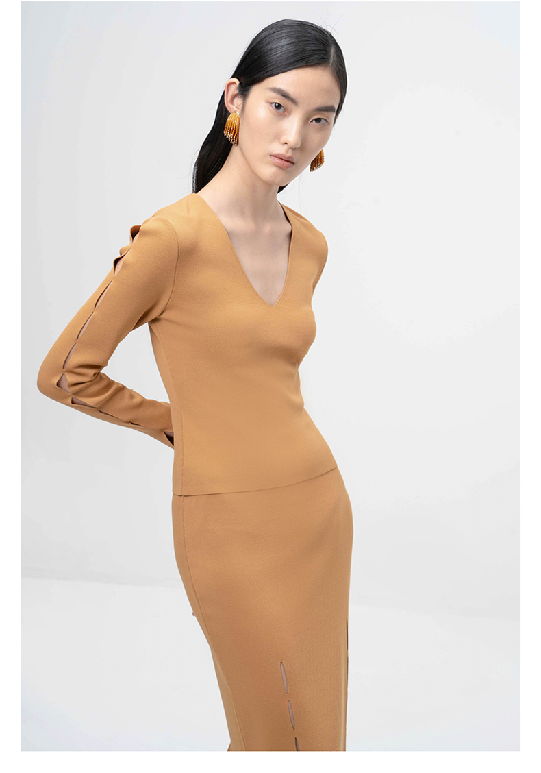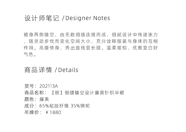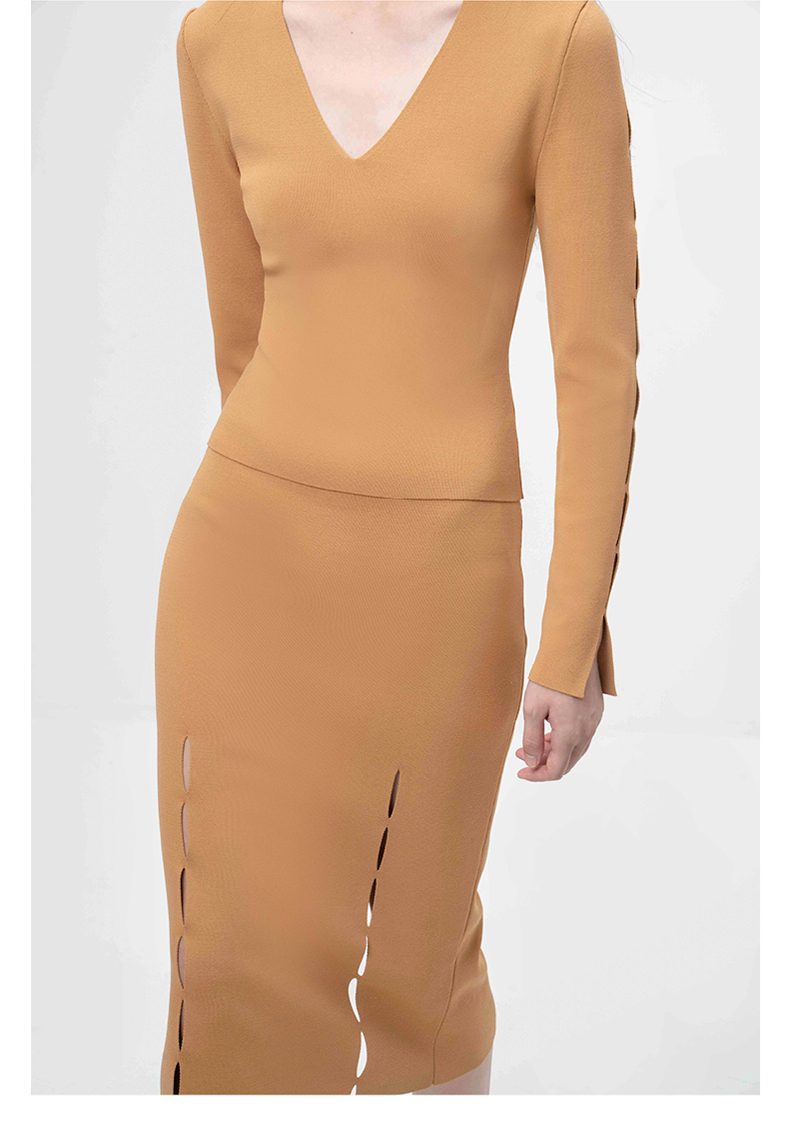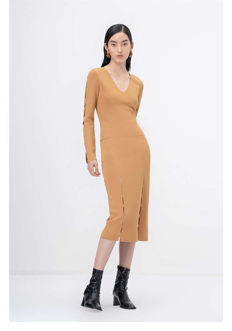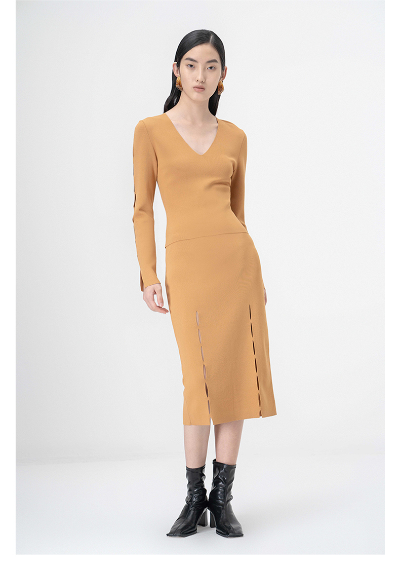 【隙】细缝镂空设计藤黄针织半裙/202113A