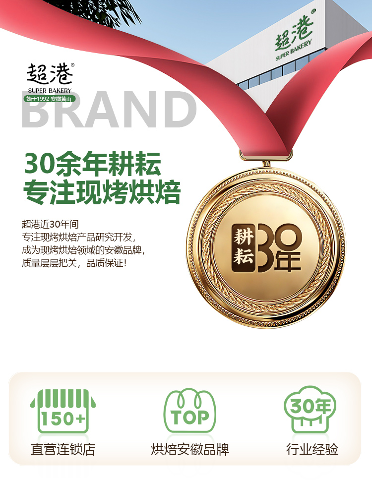 超港创立于1992年,是一家集生产销售面包、蛋糕、传统糕点、中西点于一体的全国性连锁烘焙企业,拥有百余家直营门店。超港以“玩味烘焙、文创美学”为经营理念。