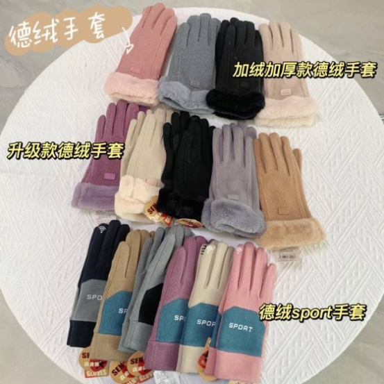 升级版德绒手套:紫色,米白,黑色,灰色,咖色