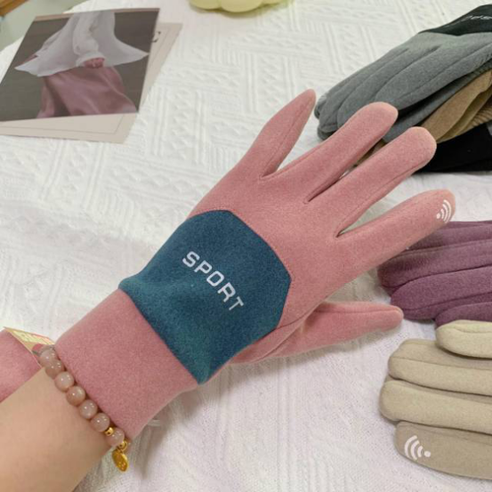 德绒sport手套:黑色,卡其色,灰色,紫色,粉色,米白色