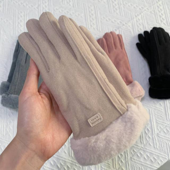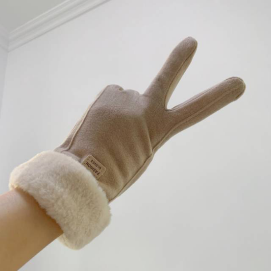 德绒手套加绒加厚:粉色,黑色,灰色,卡其