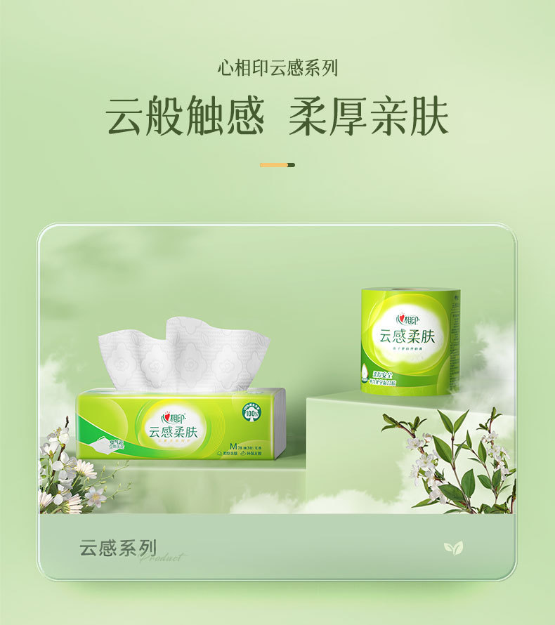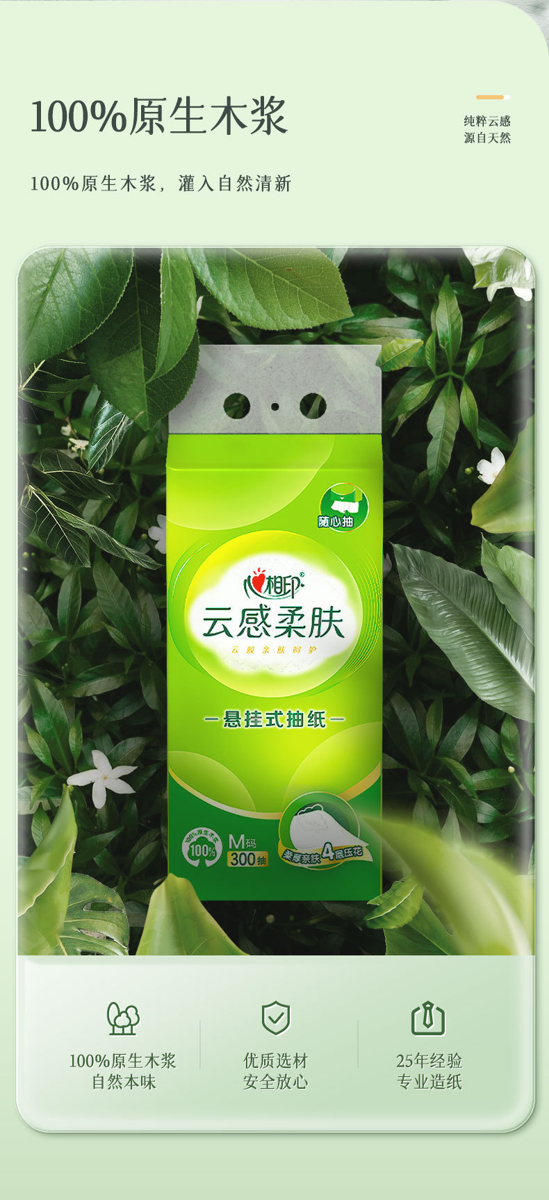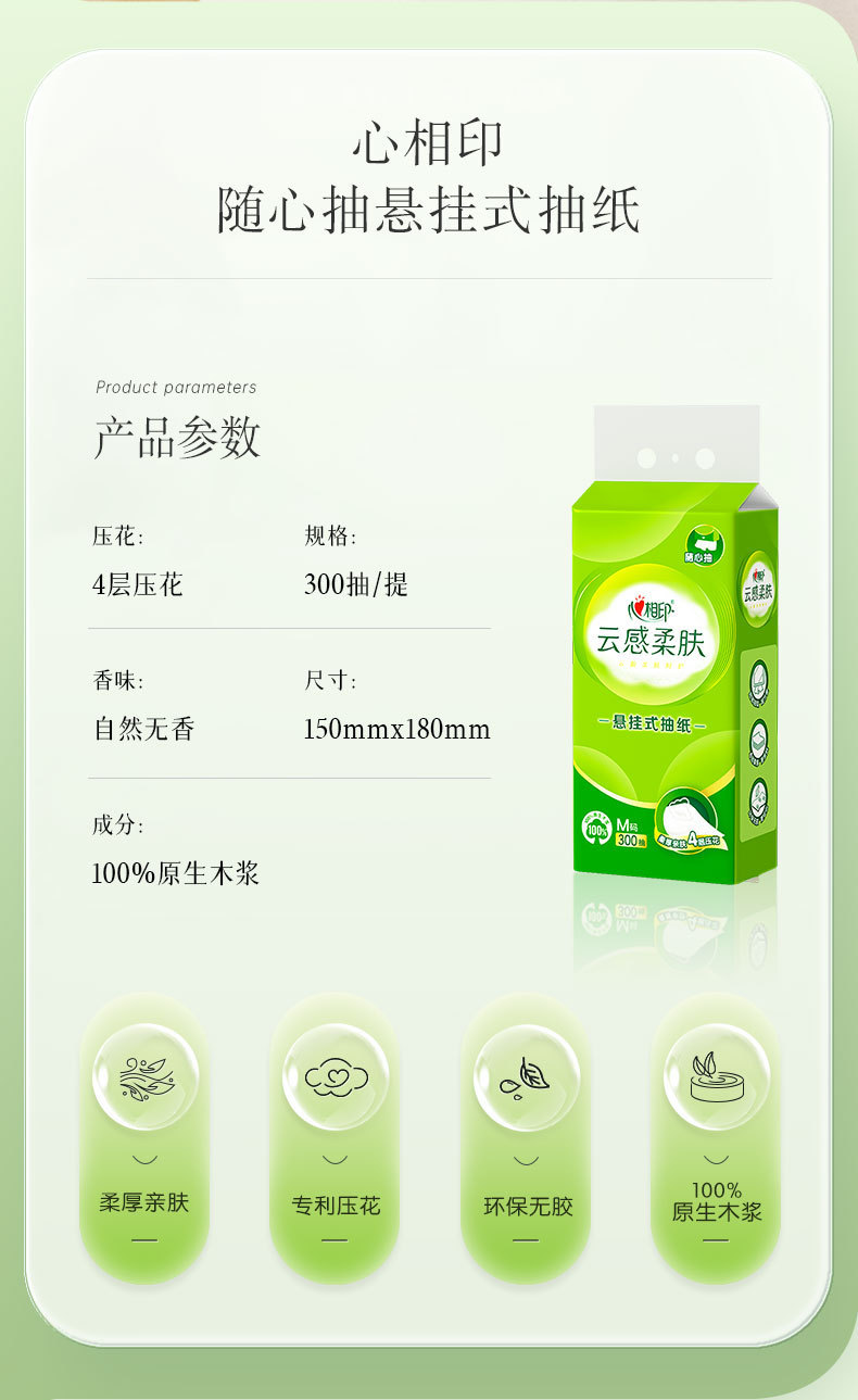 【底部抽取!无拘无束】心相印悬挂式抽纸云感4层加厚300抽家用无香面巾纸餐巾纸擦手家用纸巾。ry
