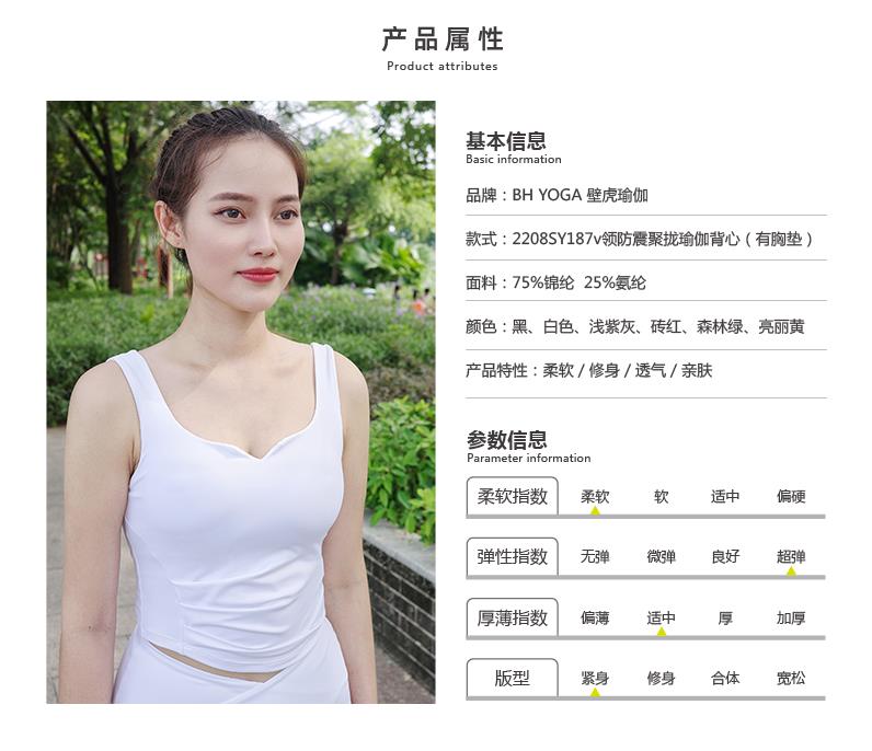 壁虎瑜伽【2208SY187】V领防震聚拢瑜伽背心(有胸垫)【5天发货】