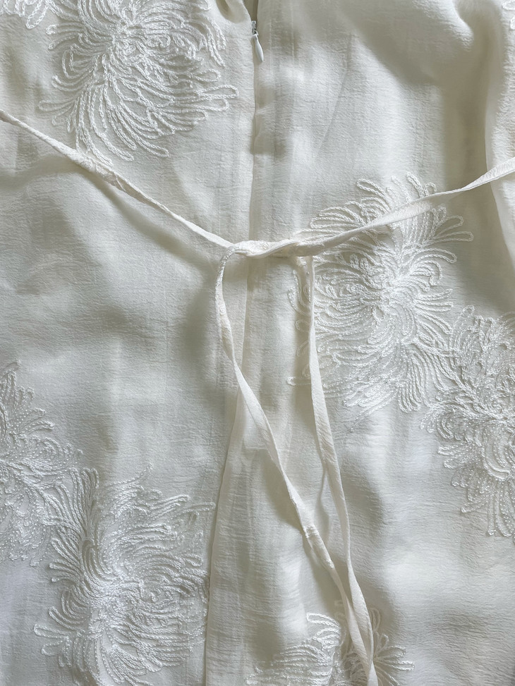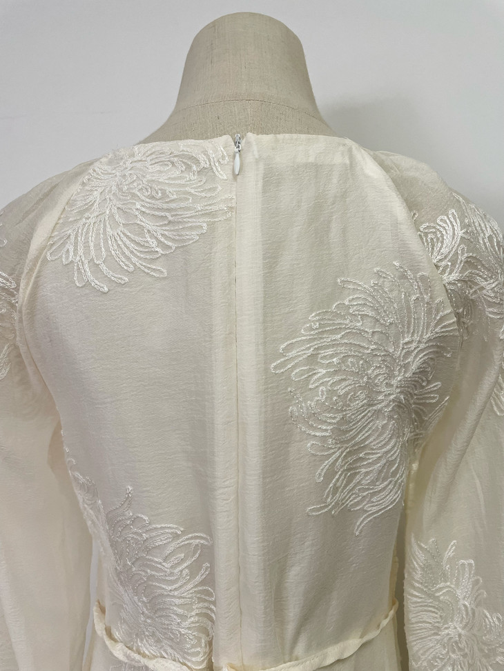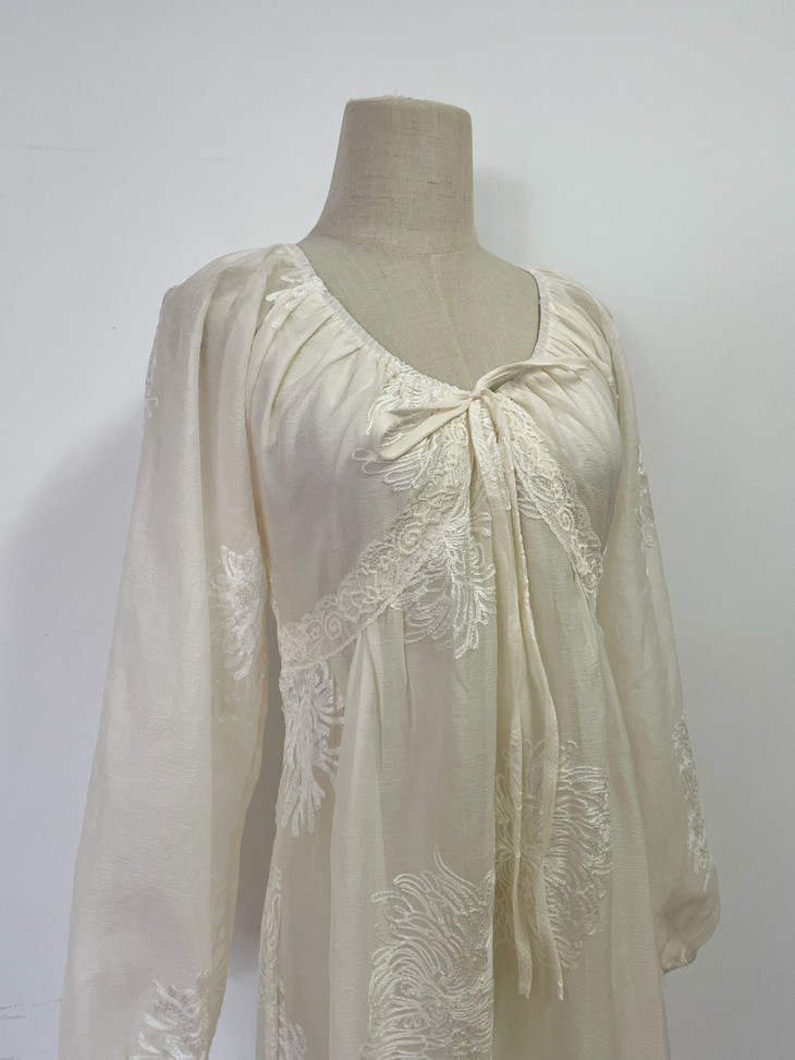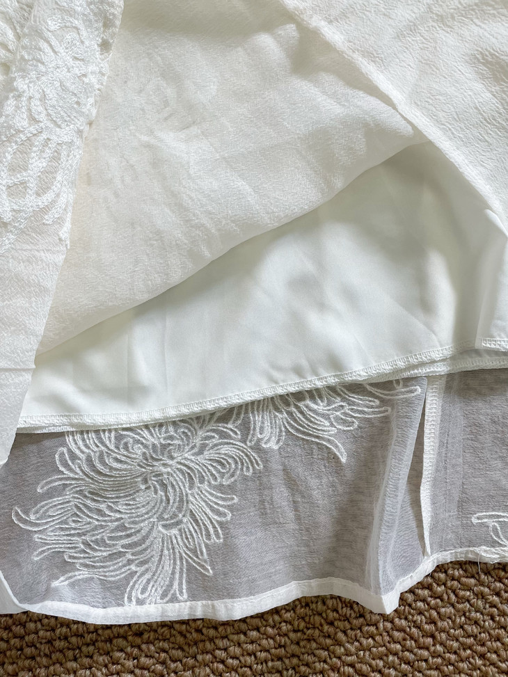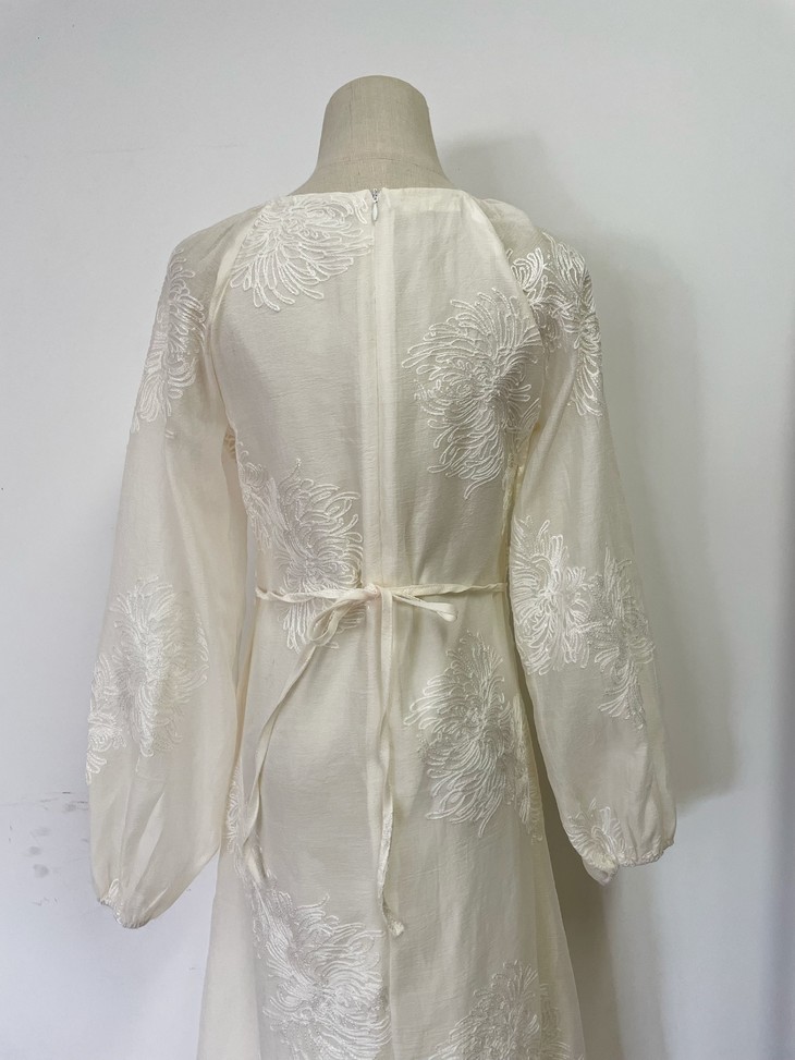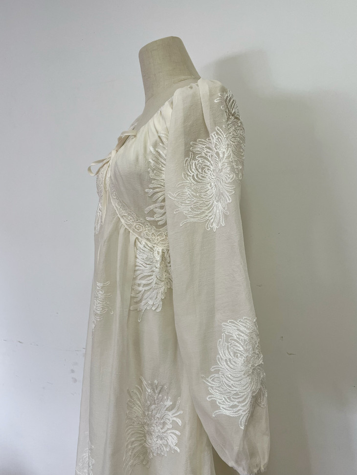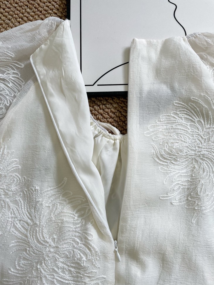 被追问 800 遍的神仙连衣裙找到了! 融合了 “仙气” 与 “实穿” 的宝藏裙子 让你在初秋,美得像从莫奈画里走出来的女主角 领口深度恰到好处,不会走光但能露出精致锁骨 胸前两道象牙白蕾丝太戳我了!! 不是廉价的网纱,而是带立体花纹的纯棉蕾丝 70%莱赛尔材质在微凉的秋日里简直是神级存在 不同于普通棉麻的僵硬,也不像真丝的娇贵 这条裙子的面料带着一种独特的 “温凉感” 奶白色裙摆在阳光下泛着珍珠光泽 行走时像流动的云朵 刺绣花朵随着步伐轻轻晃动 连风都带着温柔的气息~