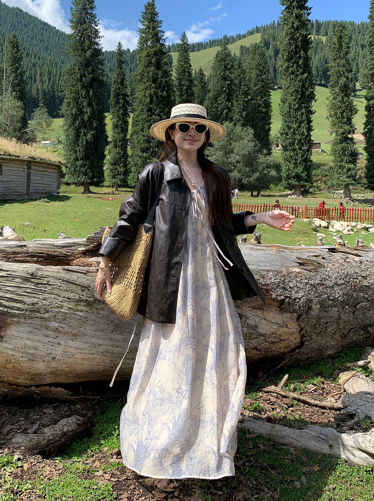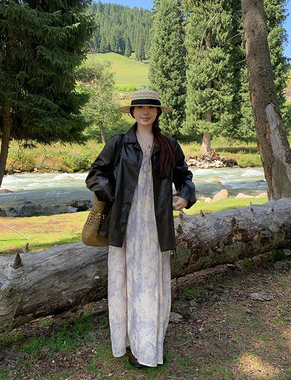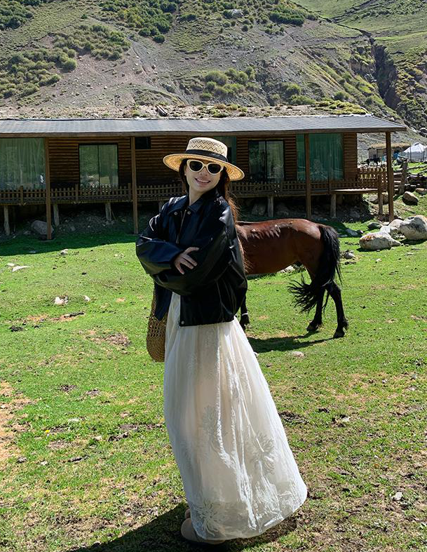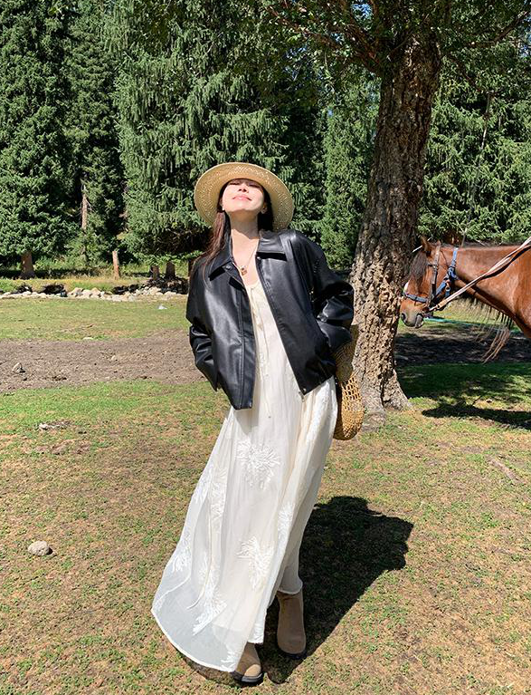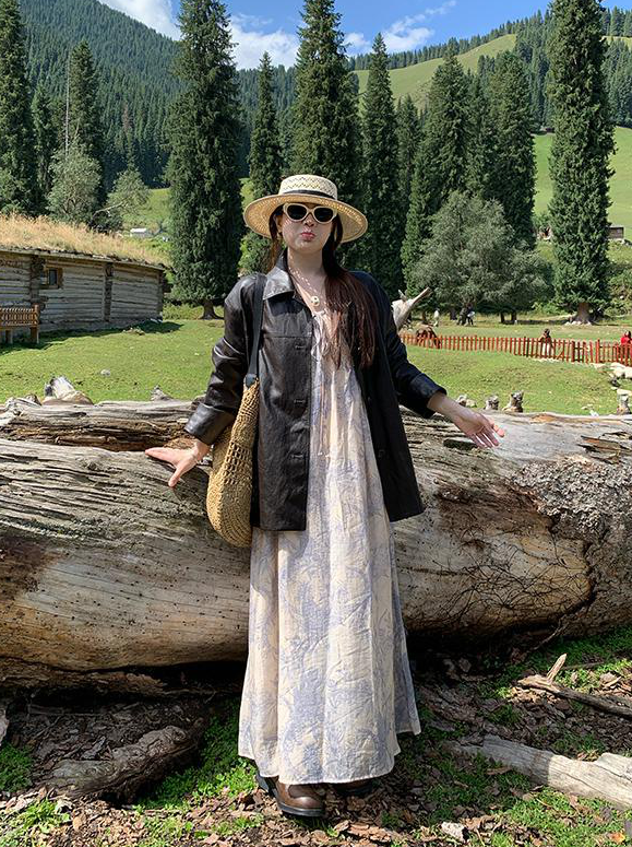 第一次在初秋穿上它时 我就明白为什么设计师要坚持用天丝材质 这种被称为 “会呼吸的面料” 在微凉的秋日里简直是神级存在 不同于普通棉麻的僵硬,也不像真丝的娇贵 这条裙子的面料带着一种独特的 “温凉感” 贴肤时像微凉的秋风拂过皮肤 既不会像针织衫那样闷热 也不会像普通雪纺那样透风!!