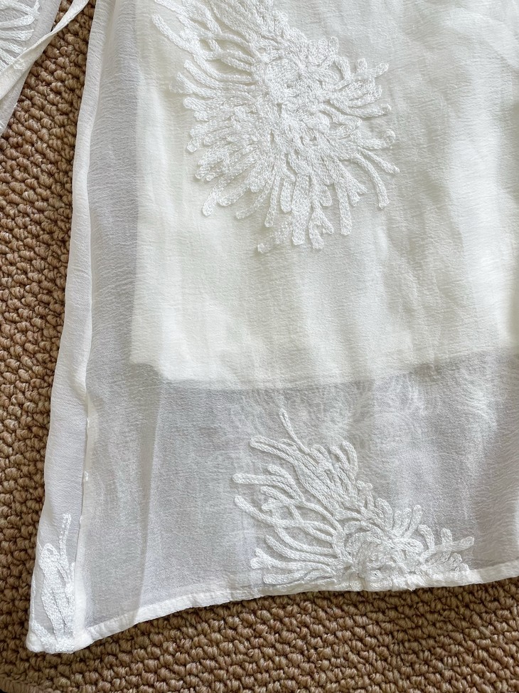 最让我惊艳的就是刺绣 不是那种廉价的胶印图案 而是老师傅手工定位的立体刺绣! 每朵花都有 5 种针法 花瓣的刺绣精致得让花朵像刚从晨露中绽放 因为刺绣工艺复杂,工厂每天只能产出 30 件 早拍早发货早收到!! 秋天就这么短,可别等降温了才后悔没入手~