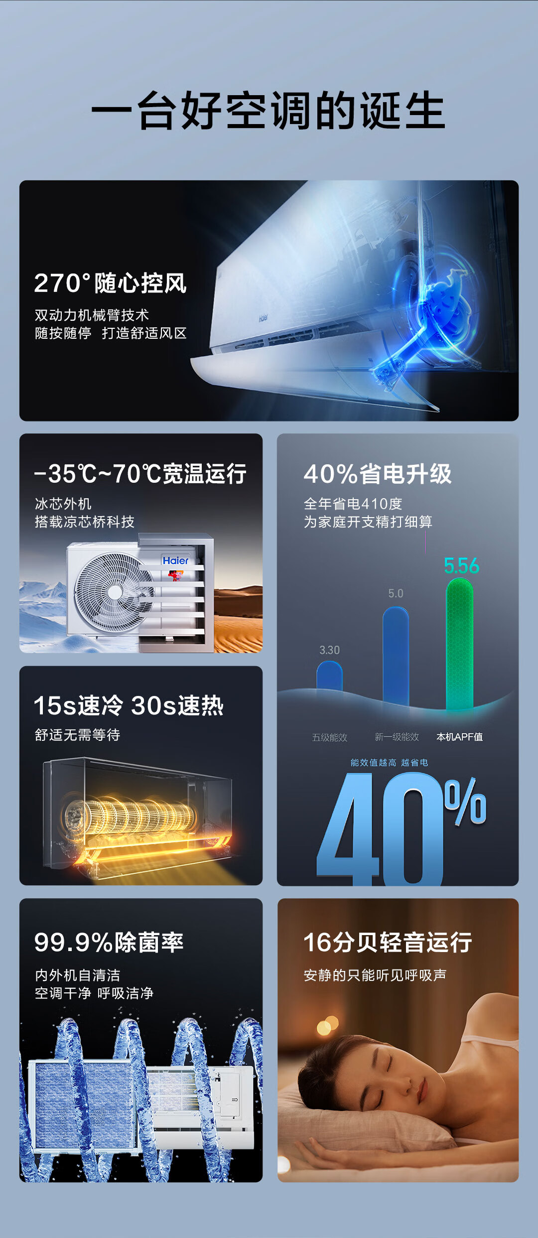 海尔(Haier)聪明风荣馨Pro 1.5P卧室空调挂机 一级能效 KFR-35GW/J500-1Pro套机 智能操控