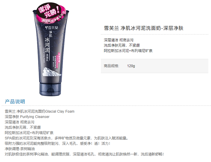 【爆款超低价预售 急单慎拍】雪芙兰净肌冰河泥深层洁净肤角质粉刺洗面奶120g