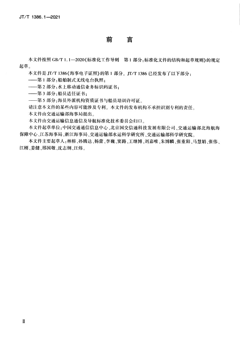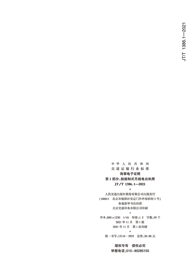 书名:海事电子证照 第1部分:船舶制式无线电台执照(JT/T 1386.1—2021)