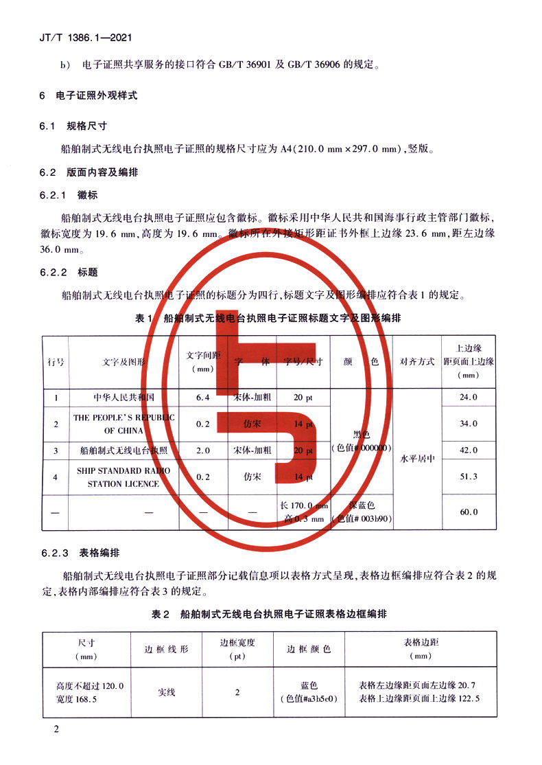 海事电子证照 第1部分:船舶制式无线电台执照(JT/T 1386.1—2021)