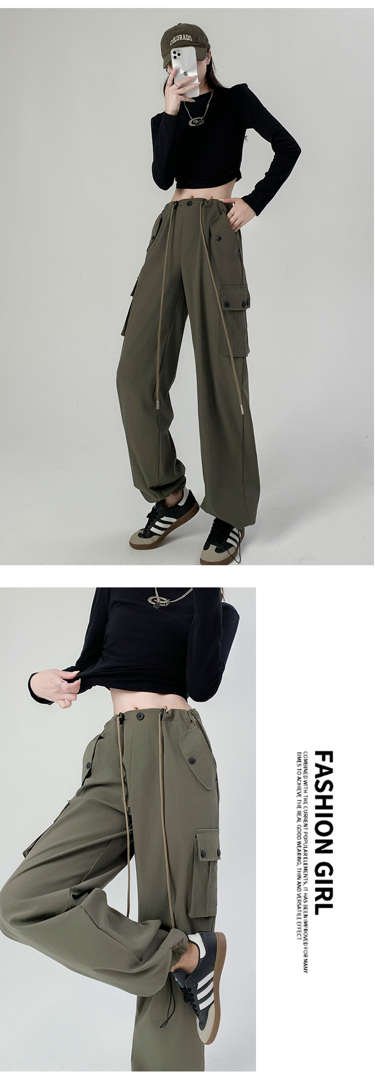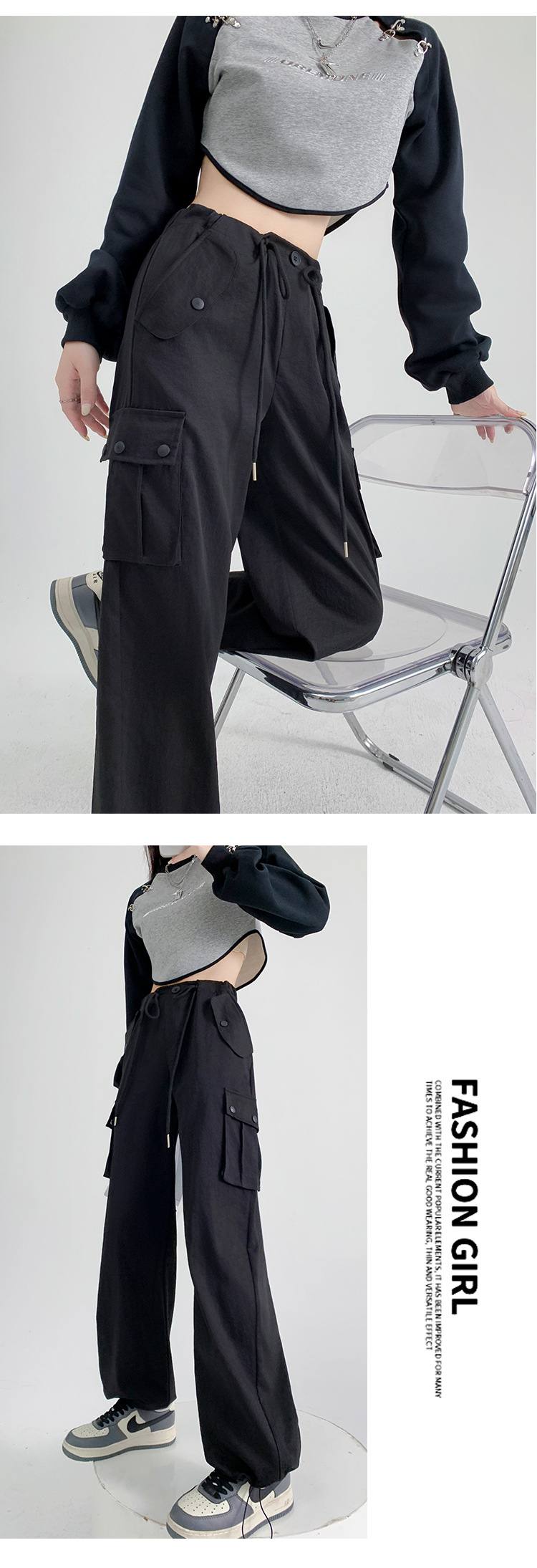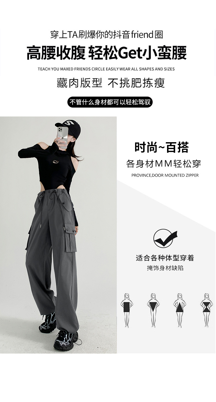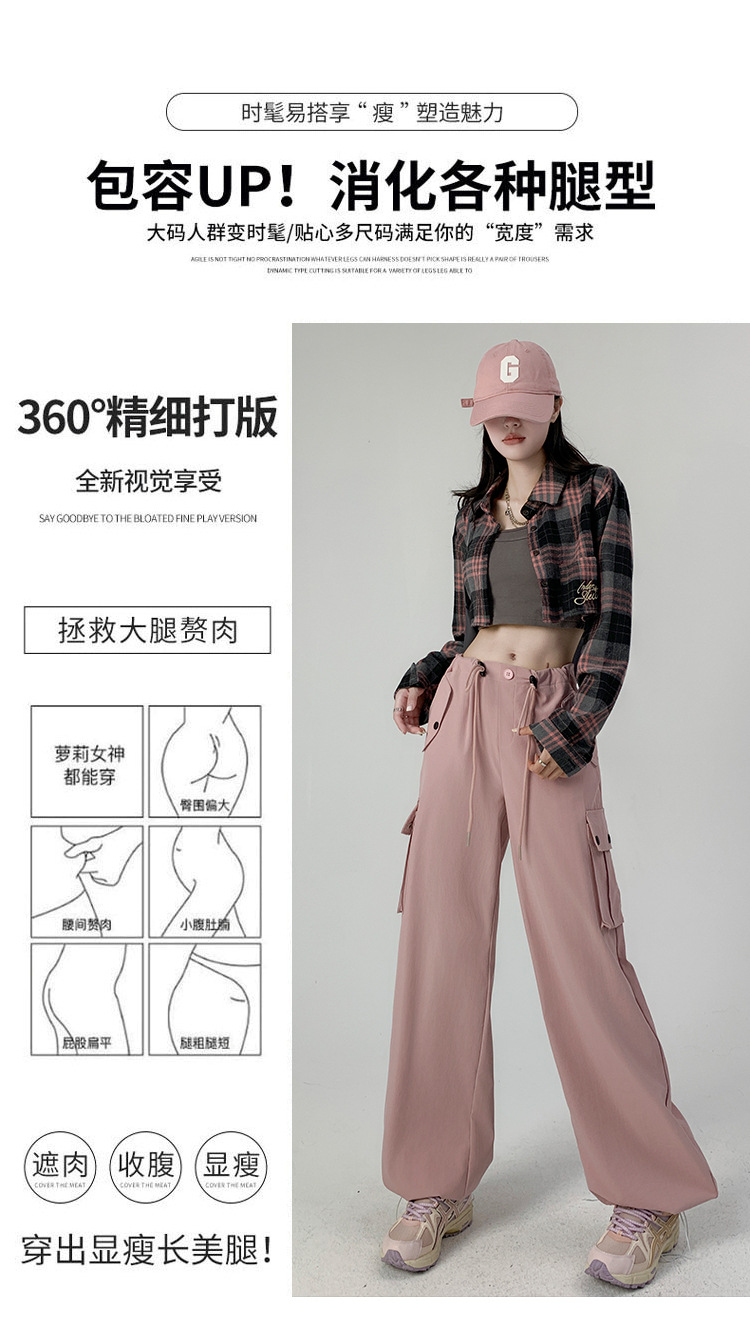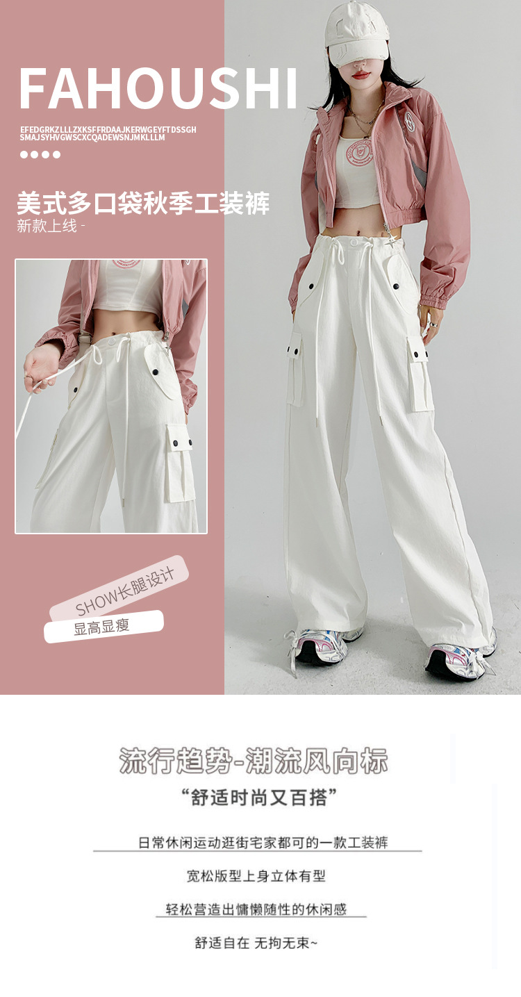 【时尚百搭!美式多口袋工装裤】女裤子秋季新款辣妹直筒休闲卫裤显瘦阔腿运动裤,宽松版型上身立体有型,轻松营造出慵懒随性的休闲感。-ry