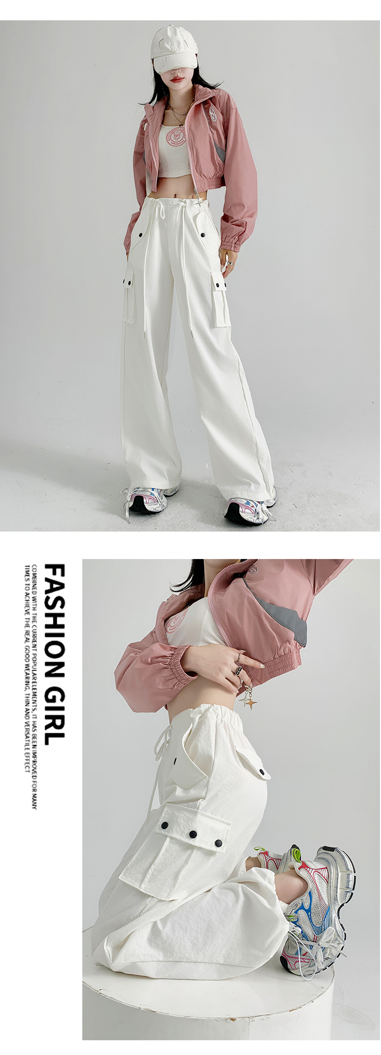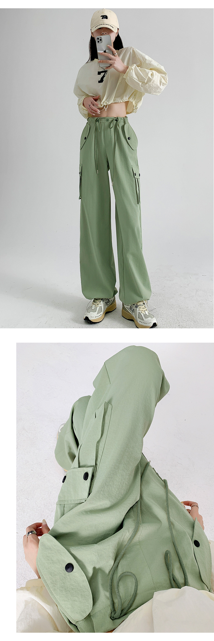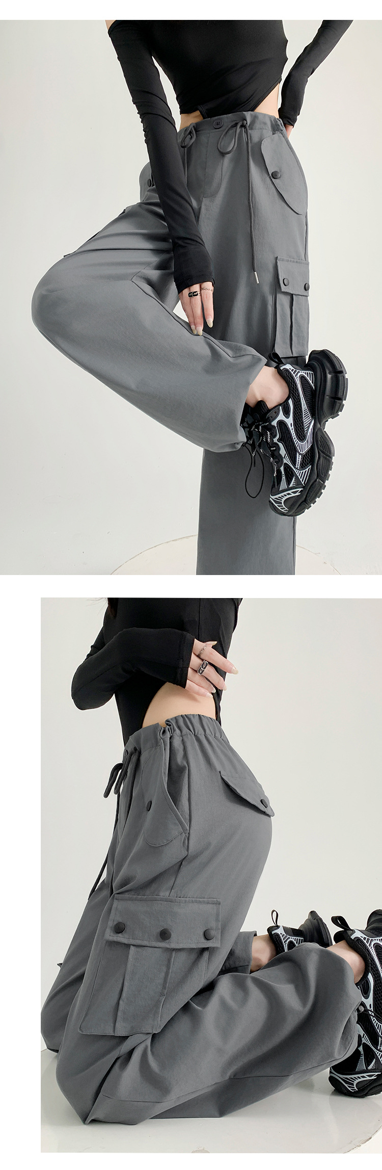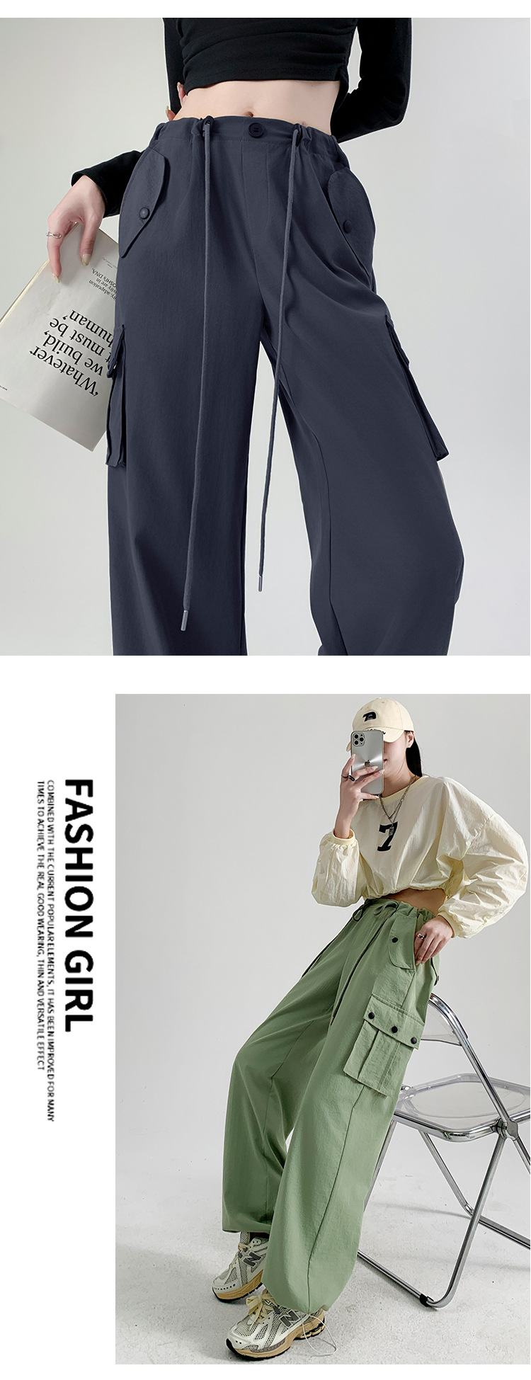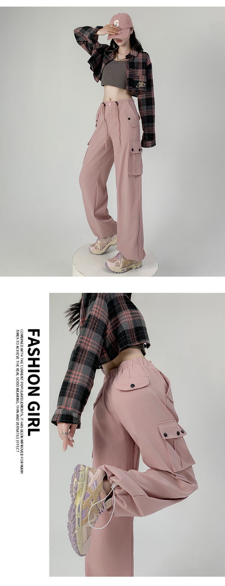 【时尚百搭!美式多口袋工装裤】女裤子秋季新款辣妹直筒休闲卫裤显瘦阔腿运动裤,宽松版型上身立体有型,轻松营造出慵懒随性的休闲感。-ry