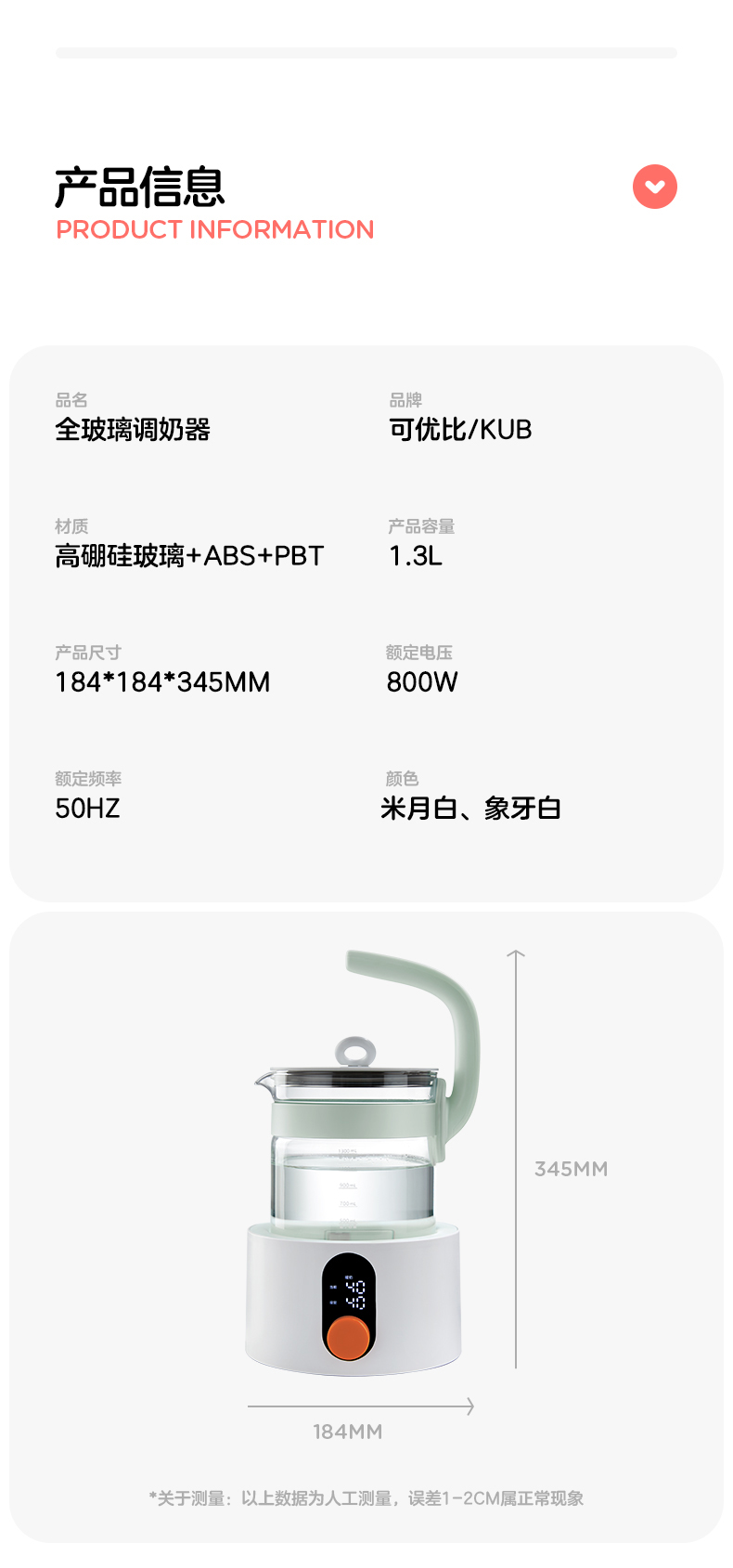 【微瑕】KUB可优比全玻璃恒温热水壶新生婴儿冲奶专用家用泡奶温奶调奶器(收到无质量问题不退不换,介意者勿拍)