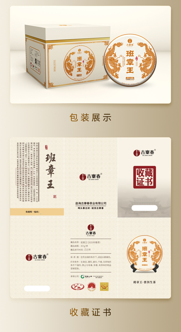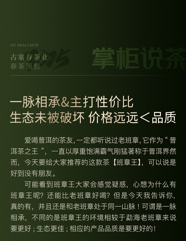 【班章王】近千年树龄高杆古树茶,炸裂来袭!与老班章同一山脉,古寨春独家资源片区 357克/饼 5饼/提