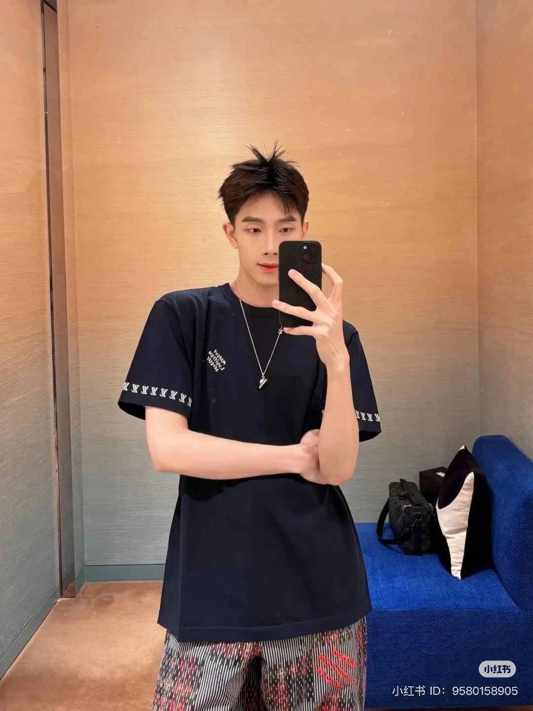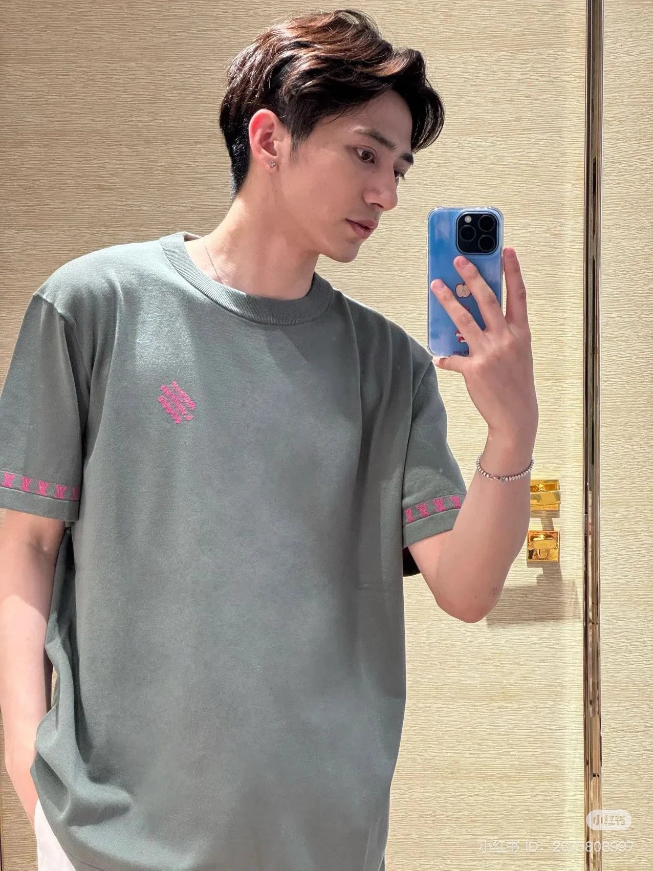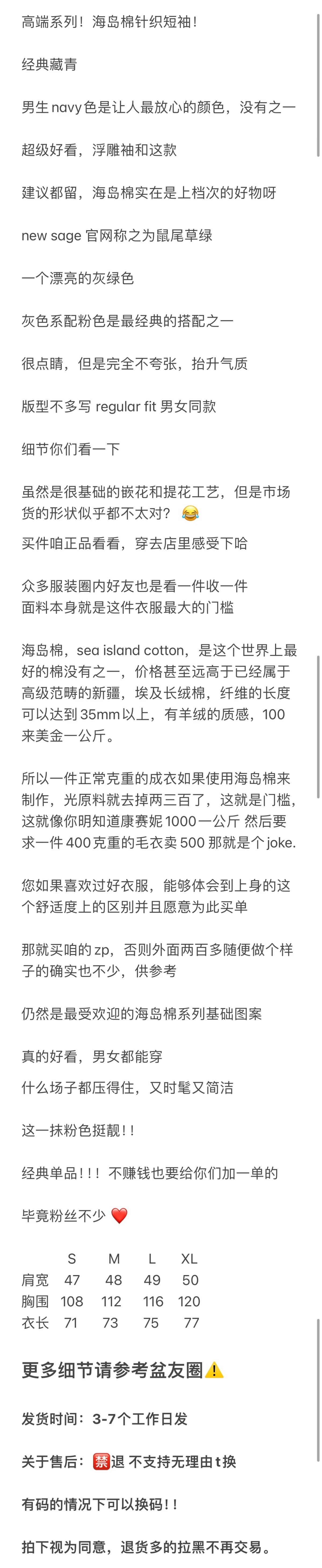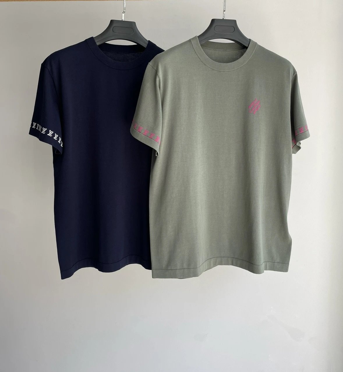 重磅系列!贸易公司 海岛棉袖口徽标提花圆领针织T恤 男女同款