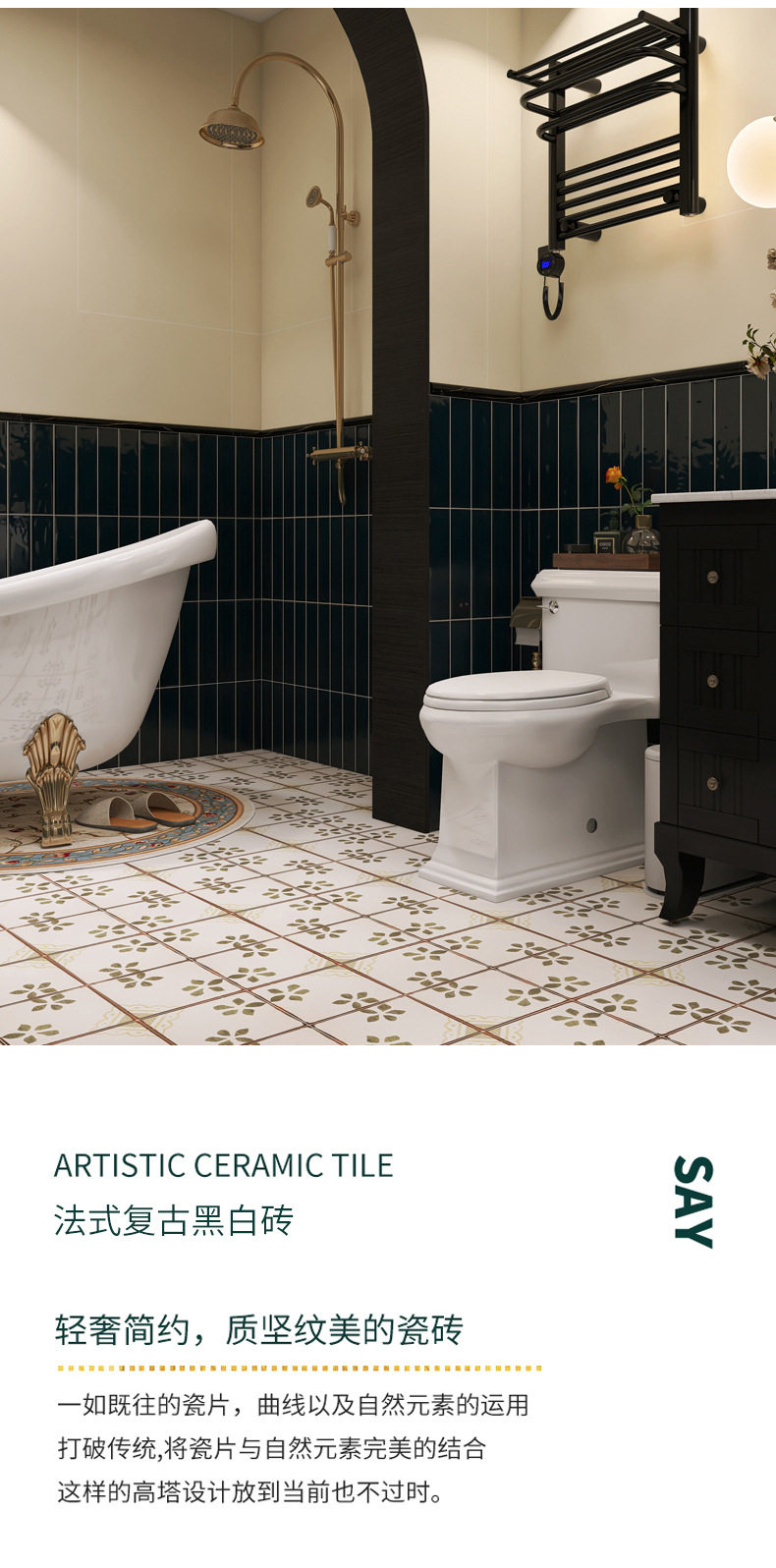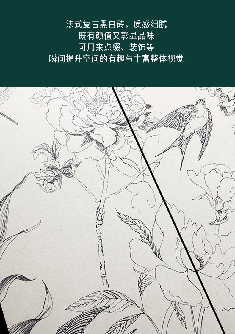 燕子小地砖卫生间瓷砖洗手间墙砖花砖法式猴子300*800复古黑白 商品图4