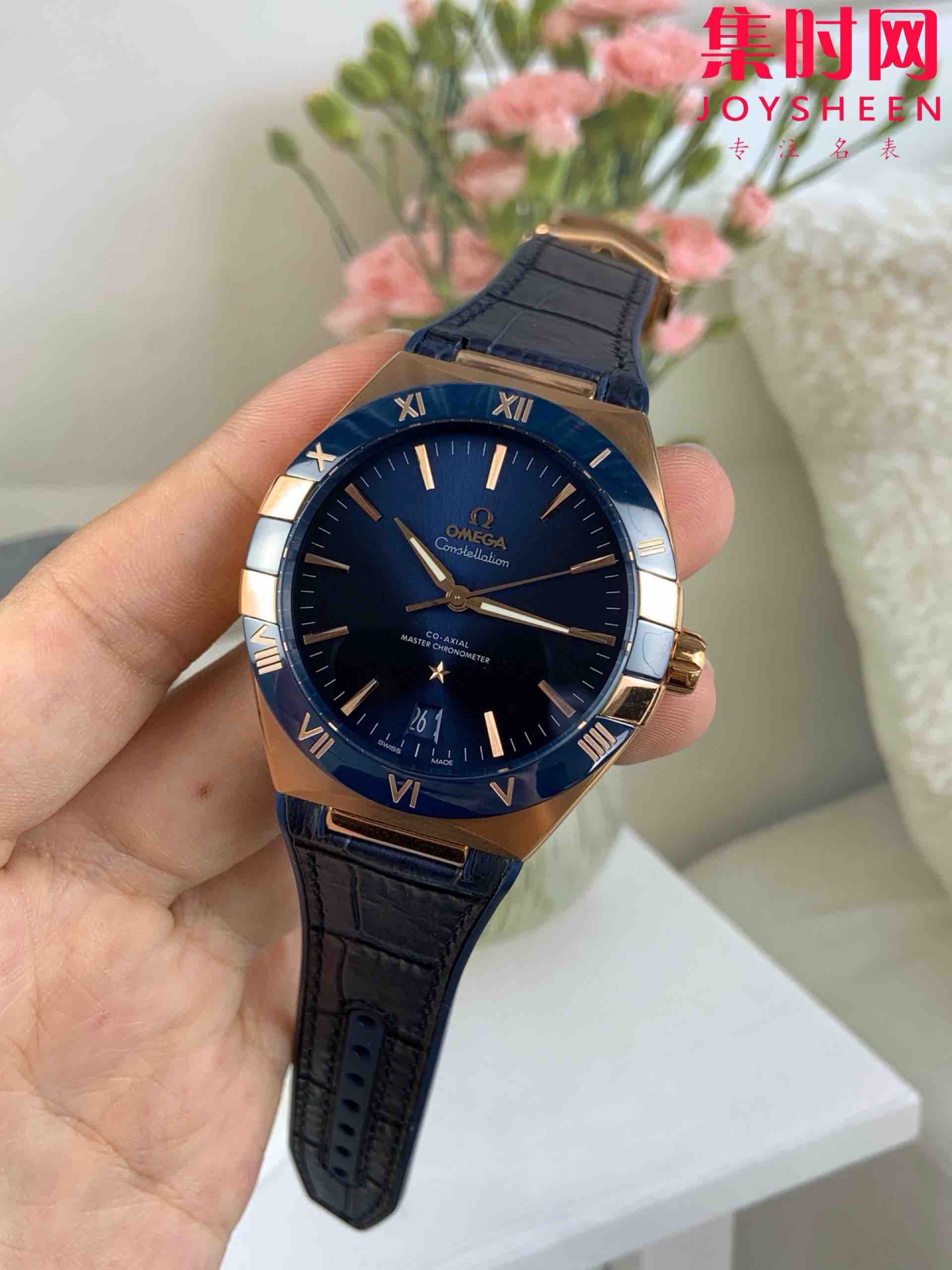 欧米茄 VS第五代星座系列 曼哈顿星座 玫金蓝 男士腕表 丹东8900一体机