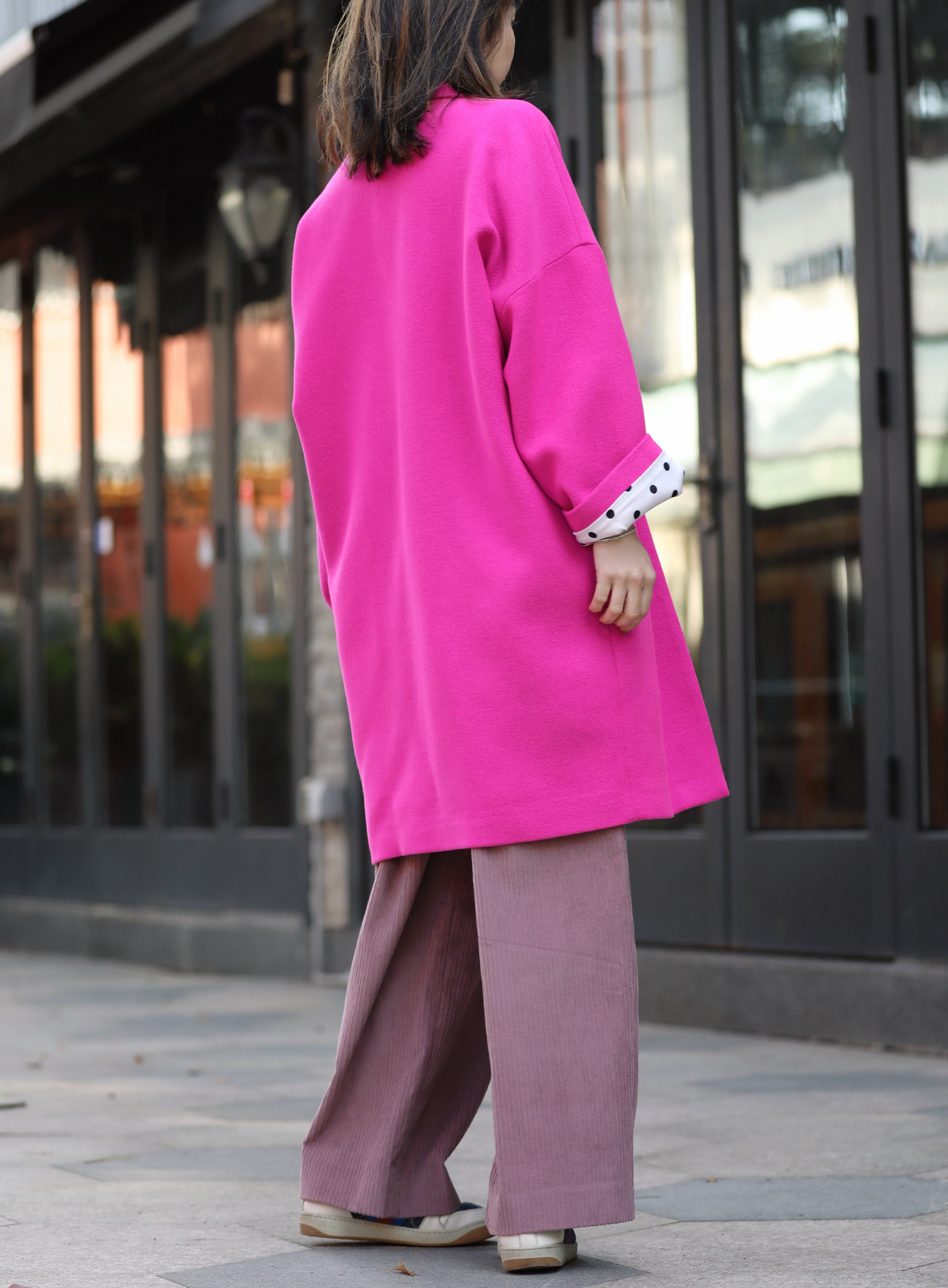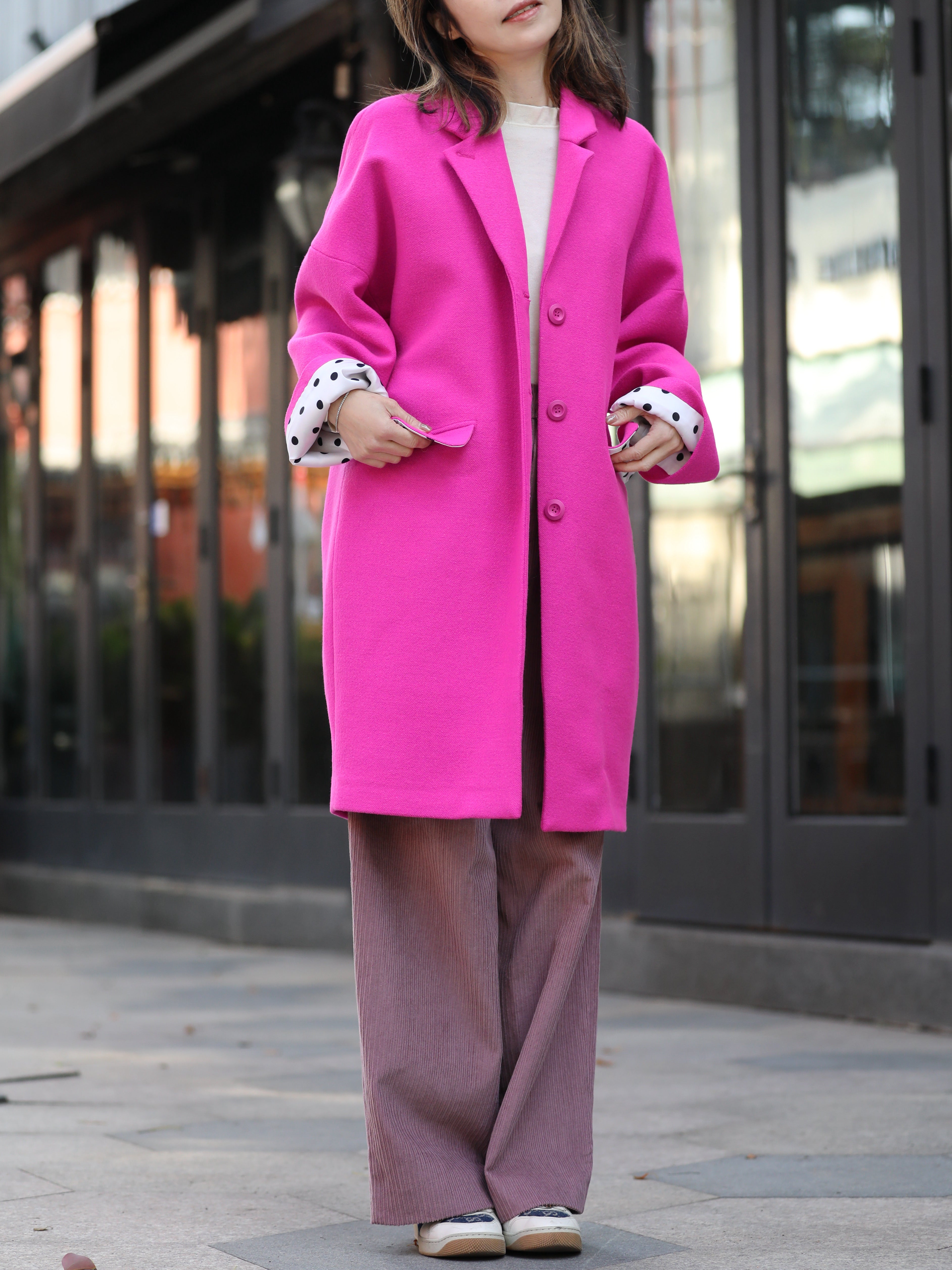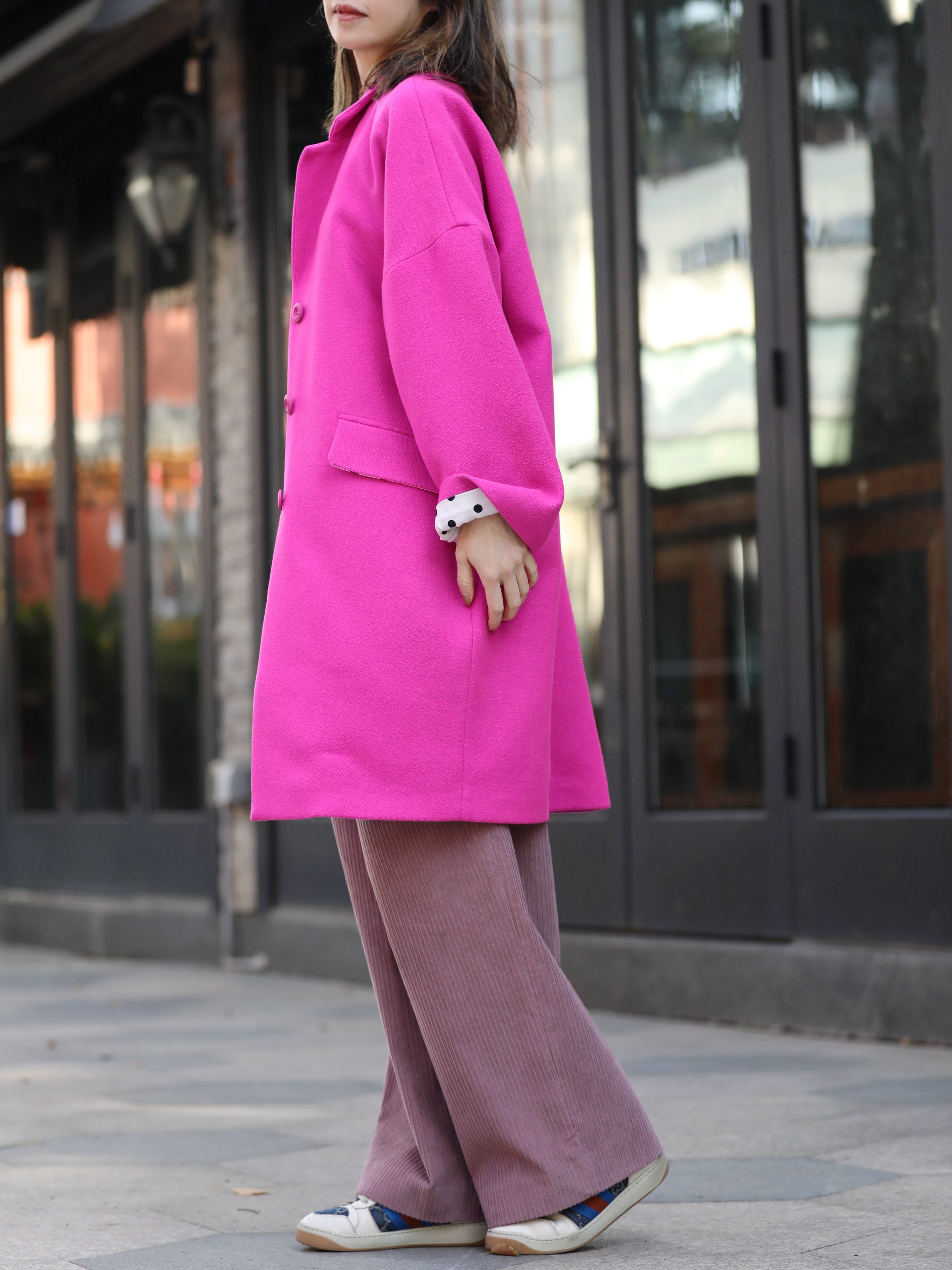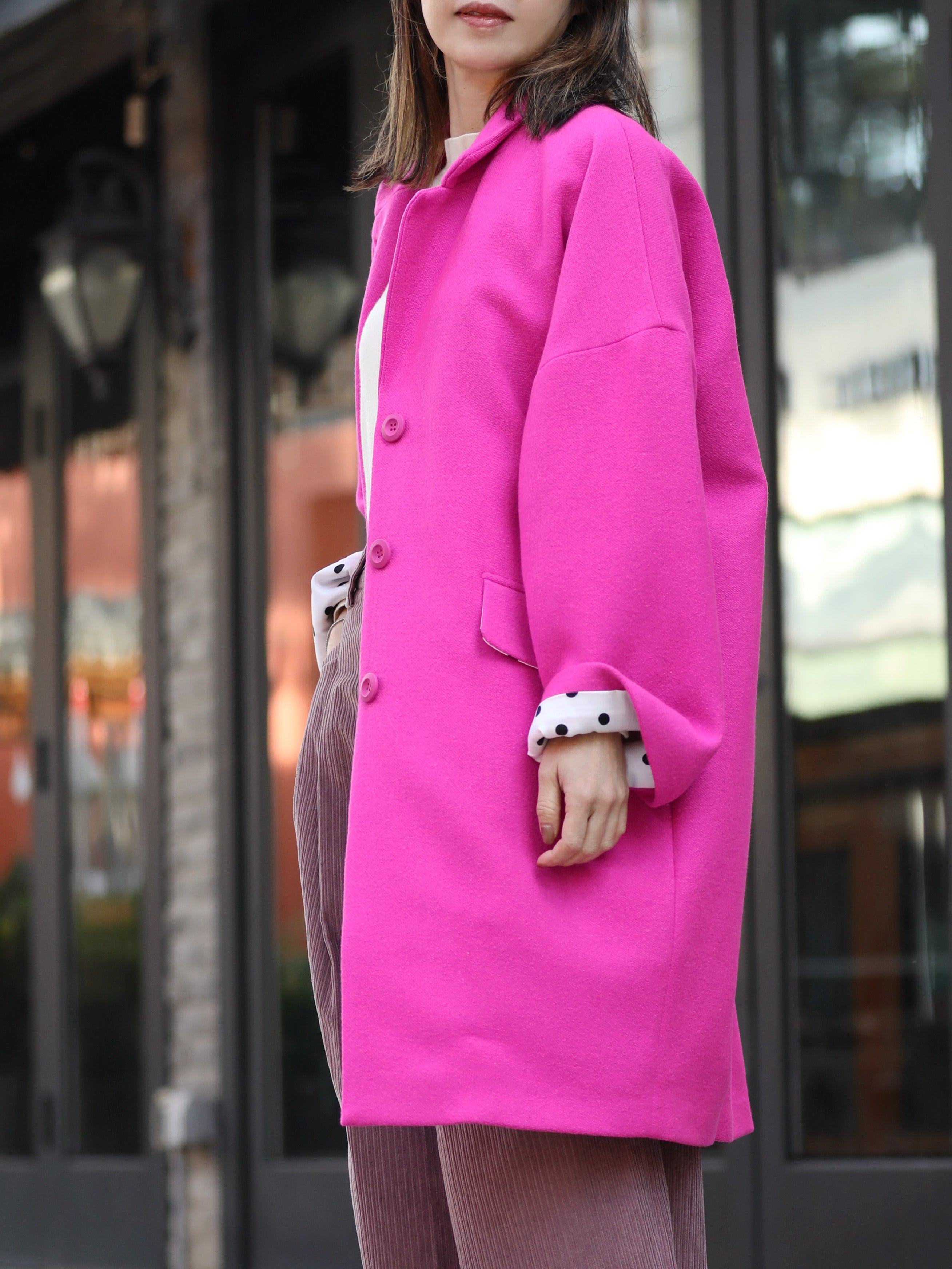 TYNVIE 纯羊毛超大号纽扣外套 - 霓虹粉