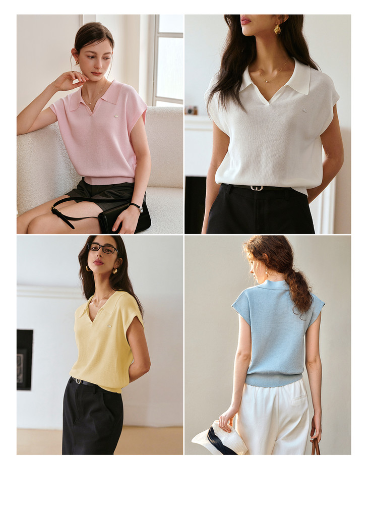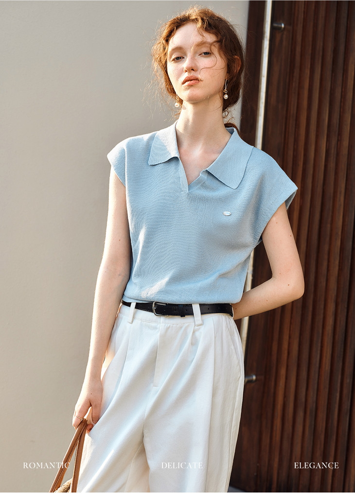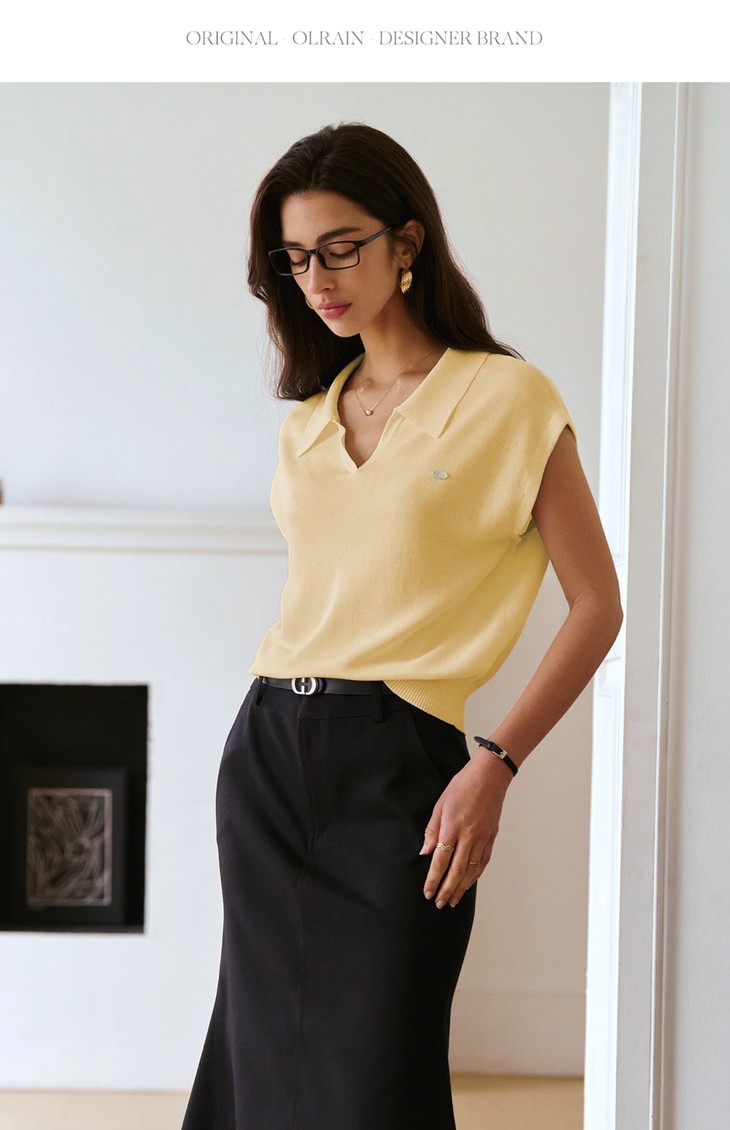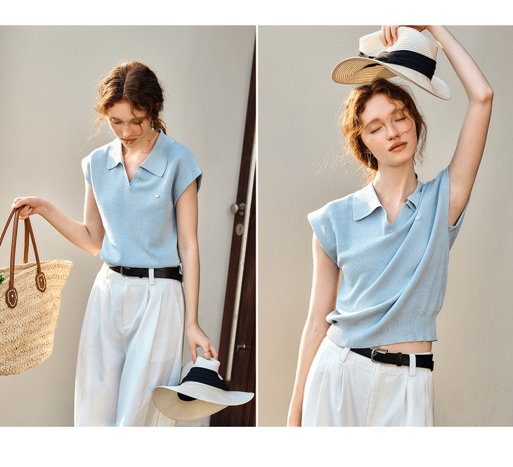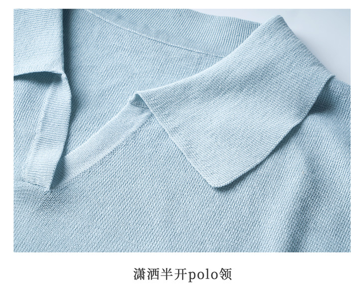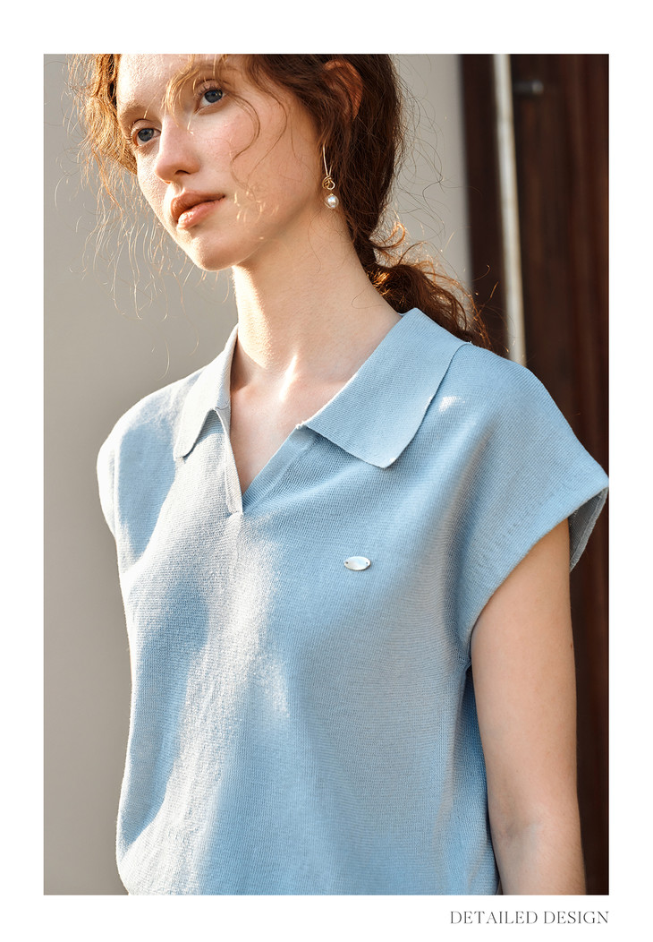 OLrain欧芮儿蓝色POLO领针织衫春季2025年新款通勤小盖袖套头衫