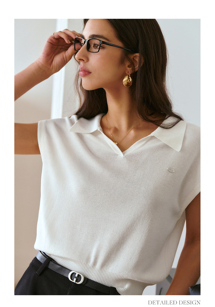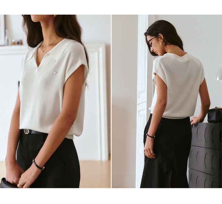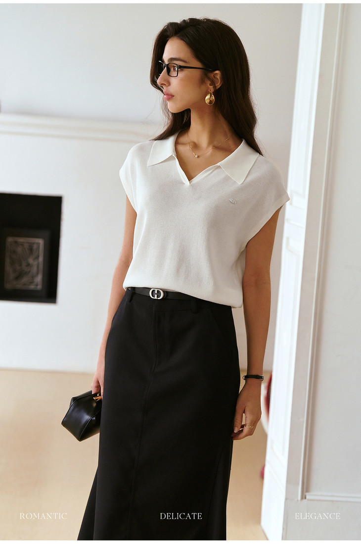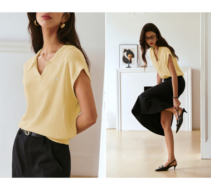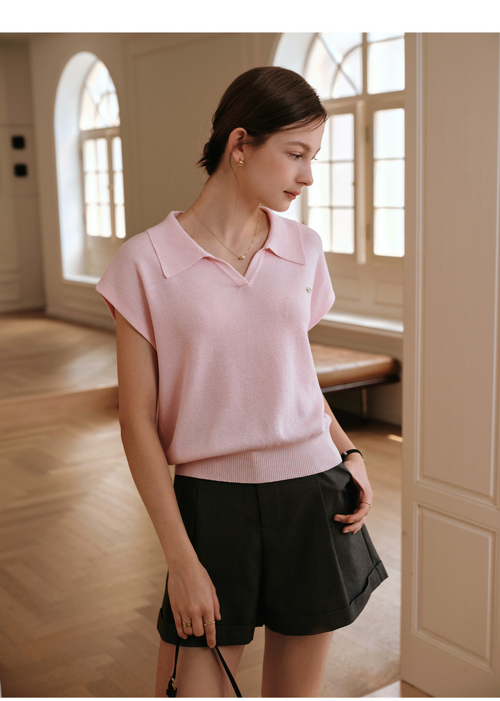 OLrain欧芮儿蓝色POLO领针织衫春季2025年新款通勤小盖袖套头衫