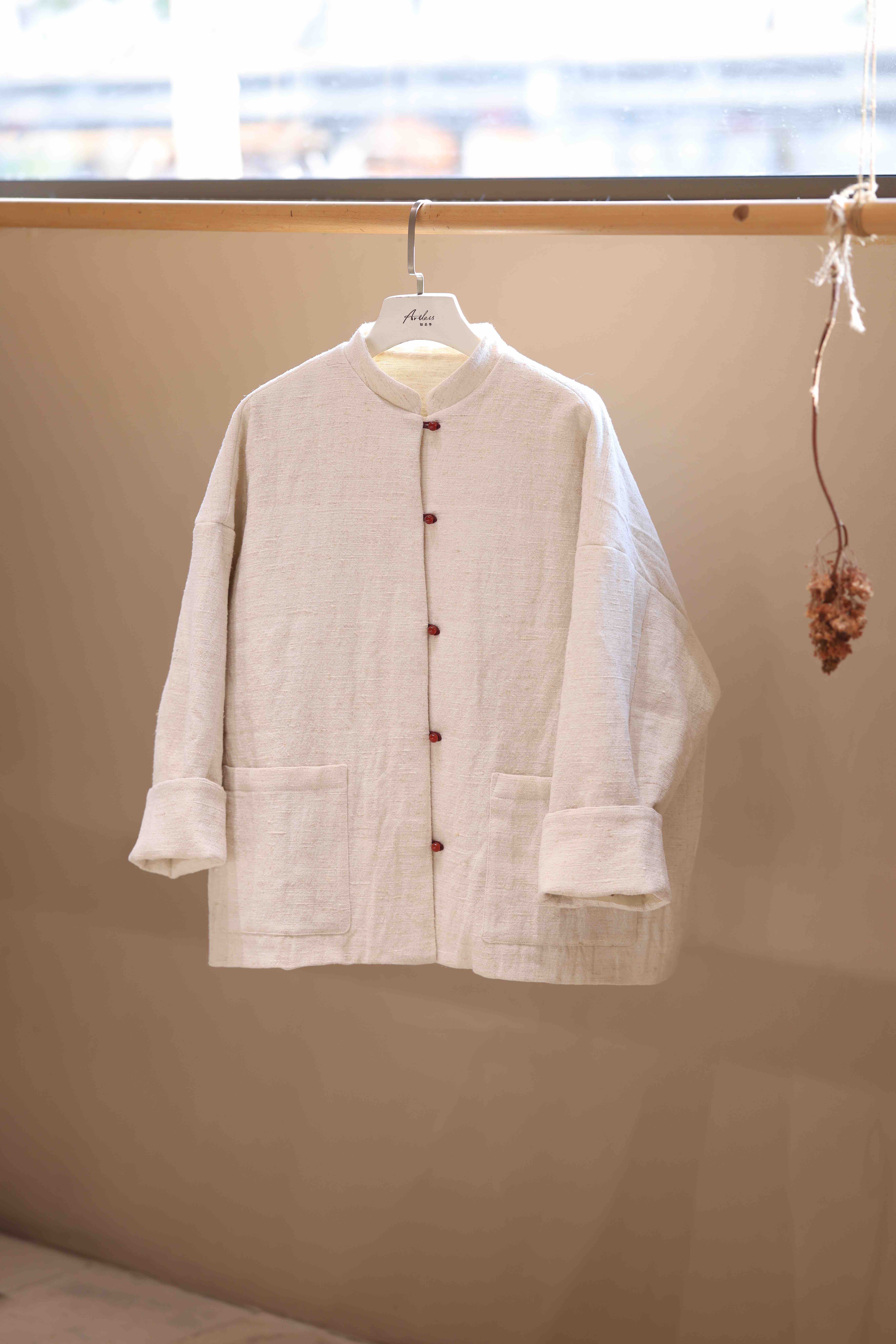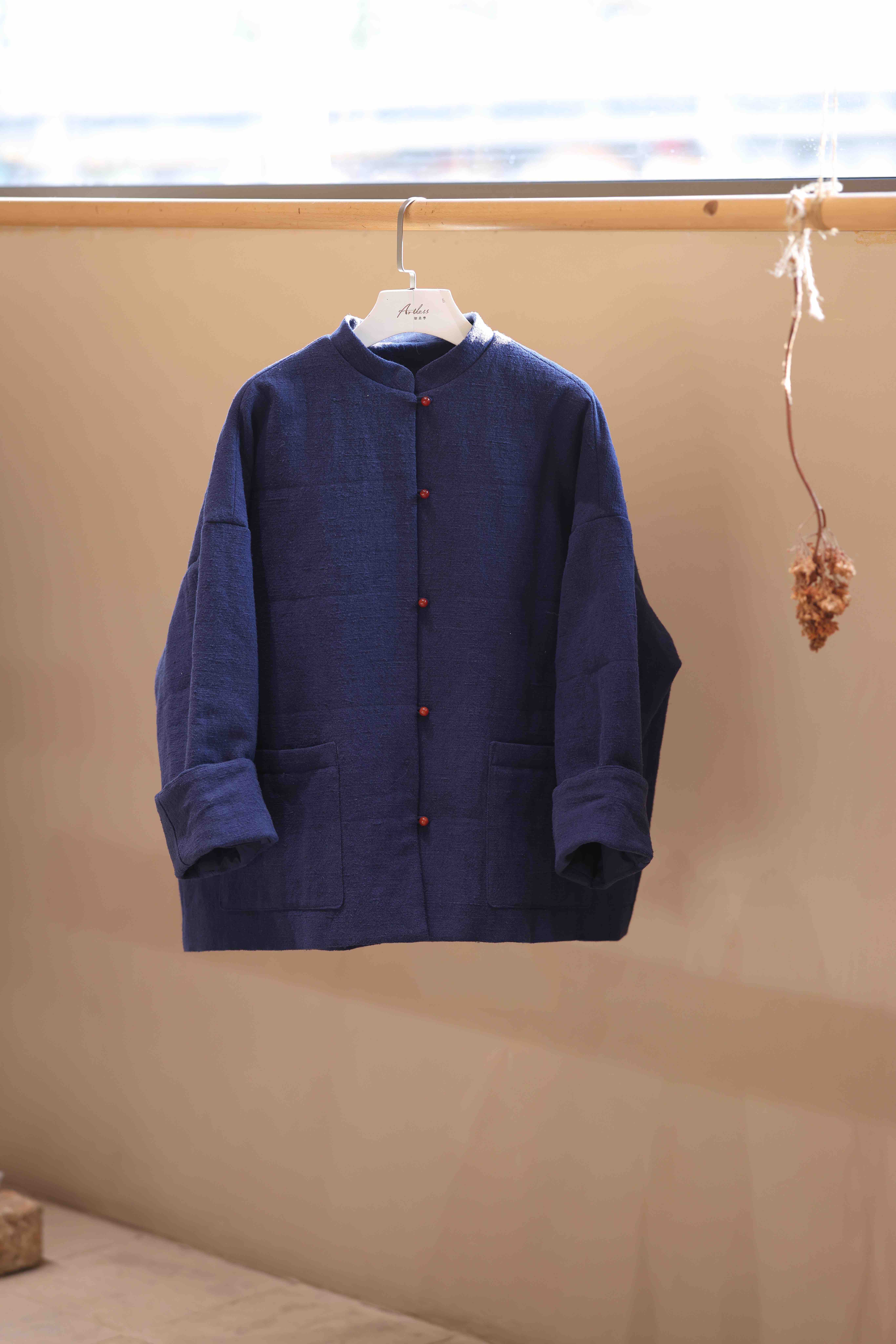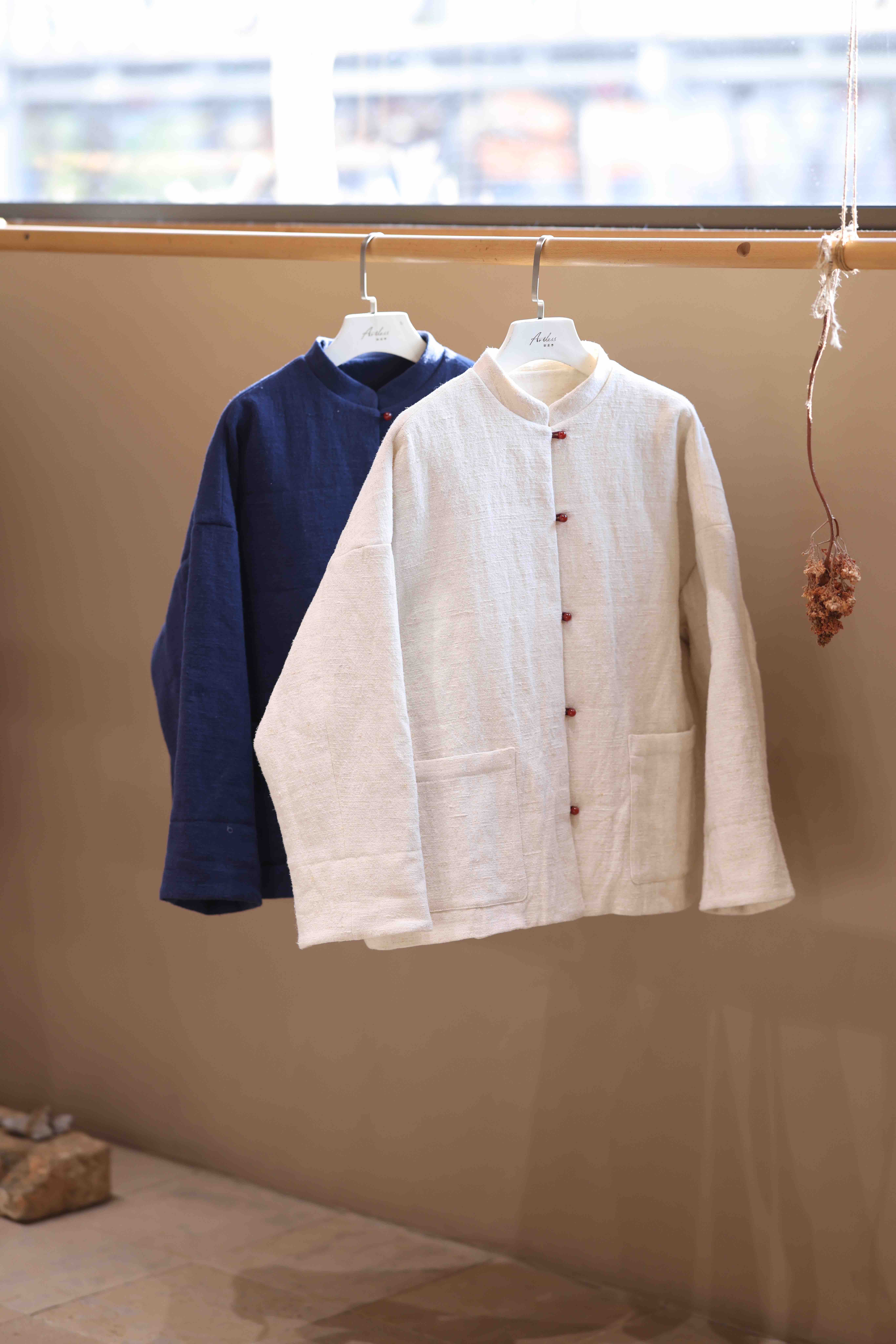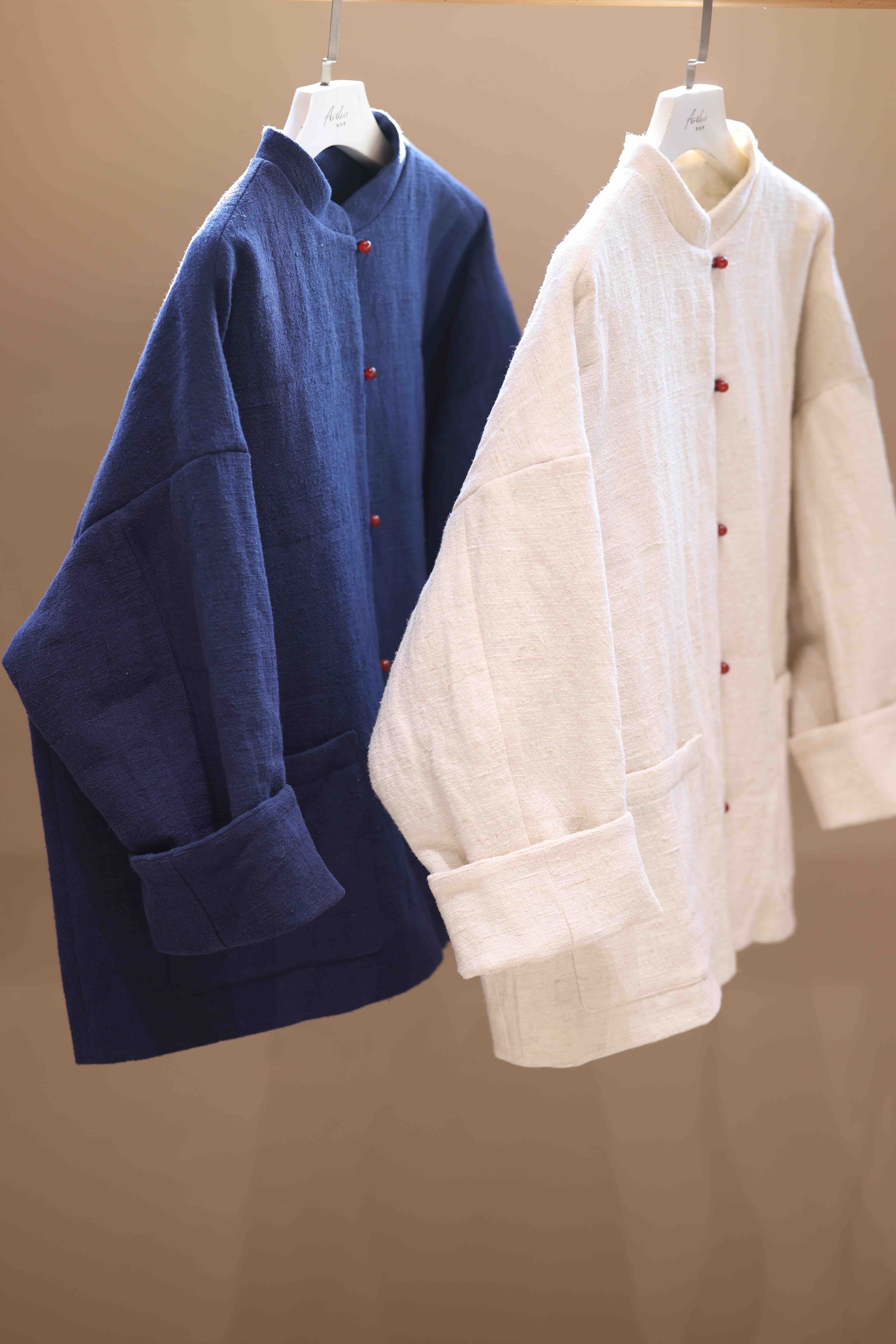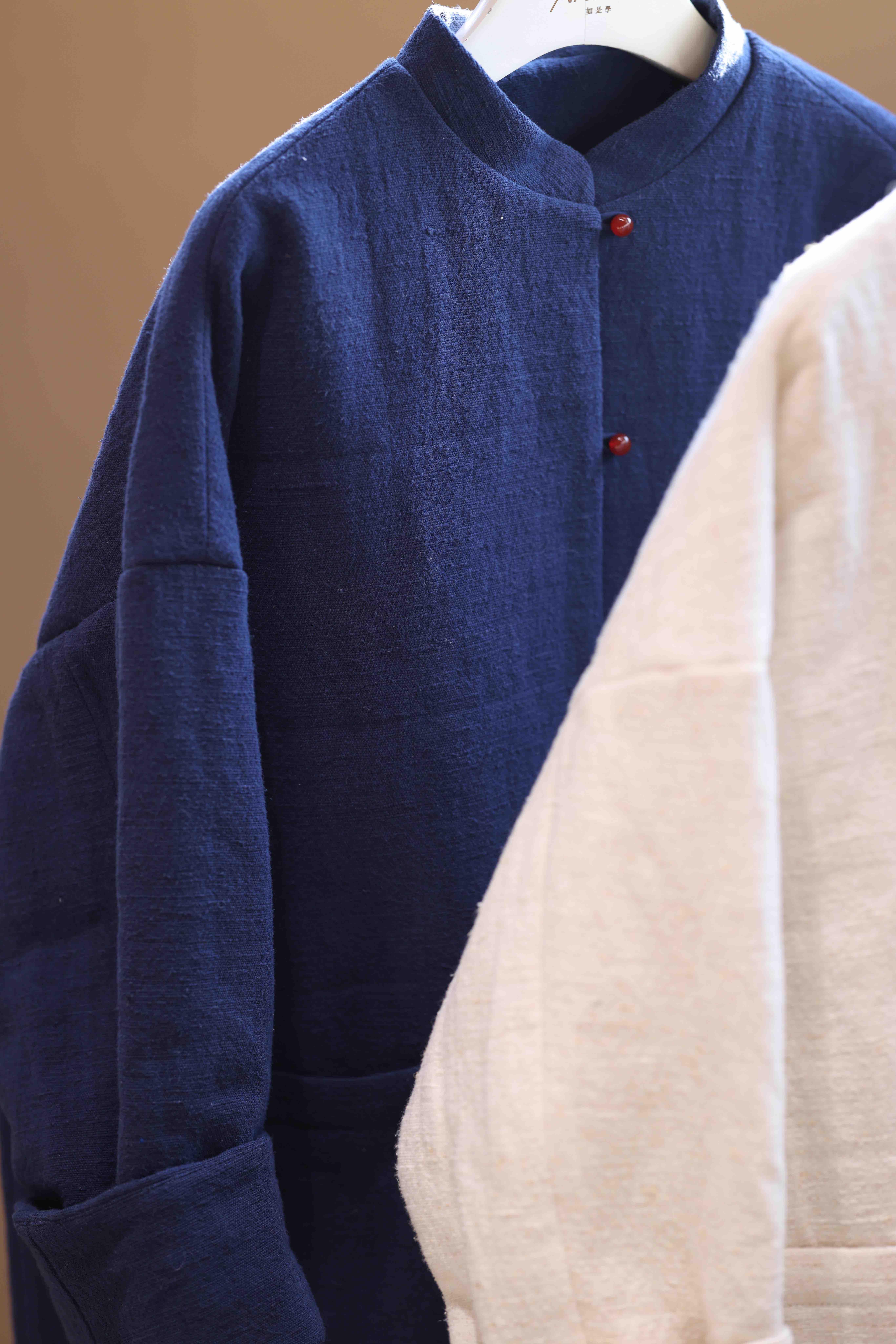 花与棉花 棉麻手工压格玛瑙扣棉服