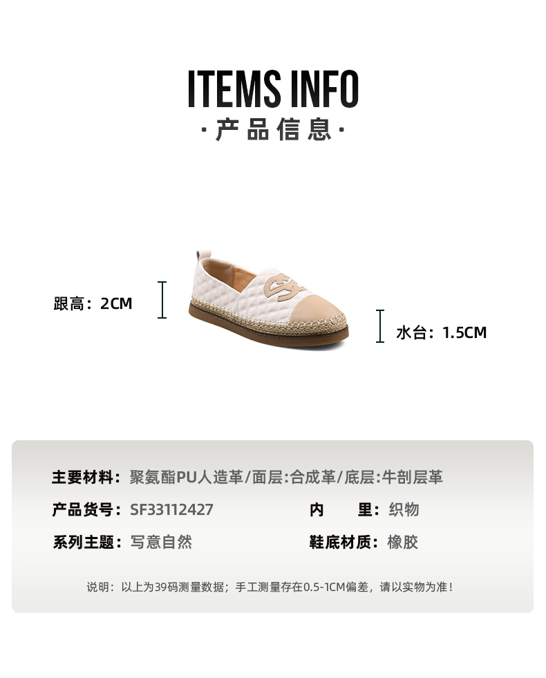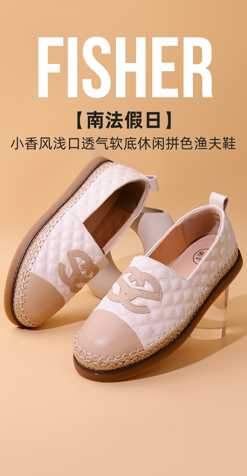 Safiya/索菲娅2023秋季新品小香风浅口透气软底休闲拼色渔夫鞋 SF33112427