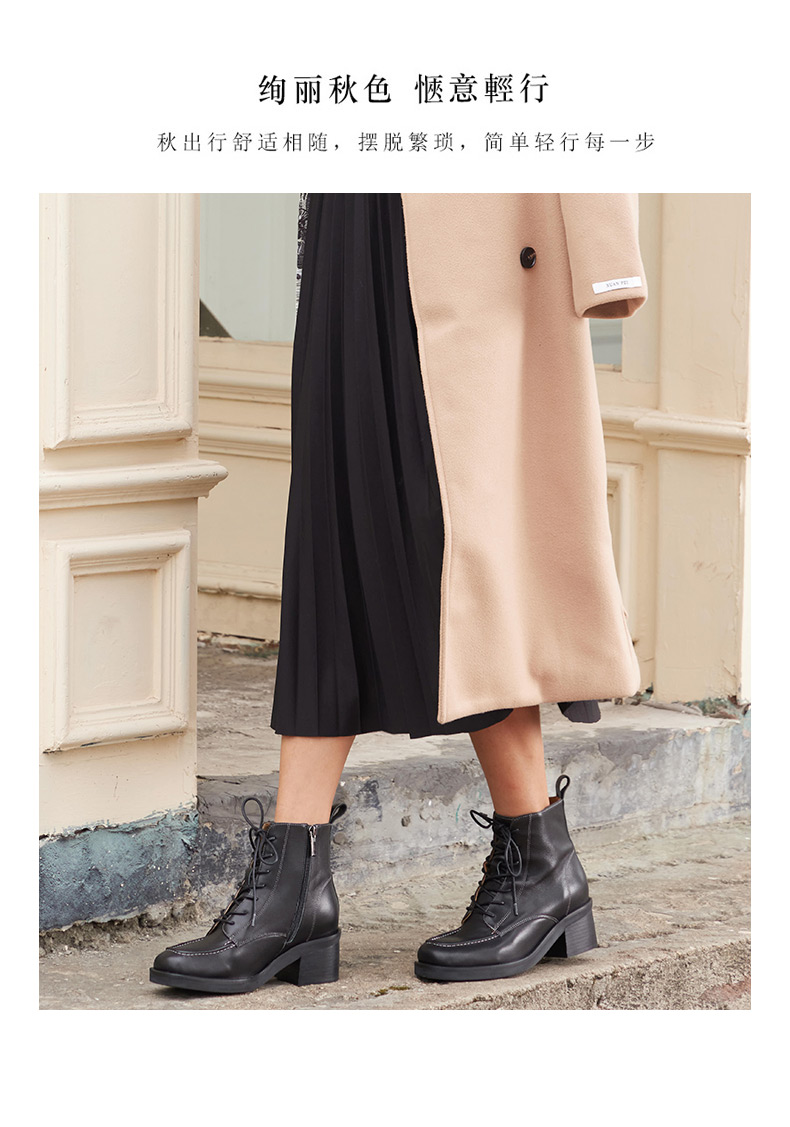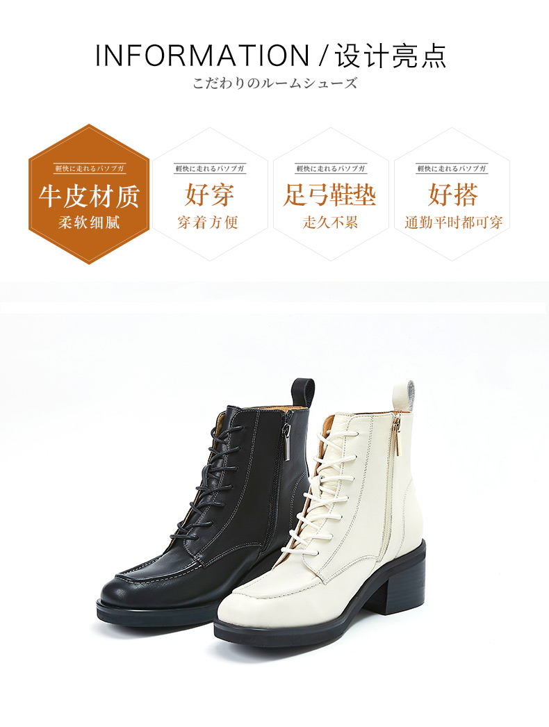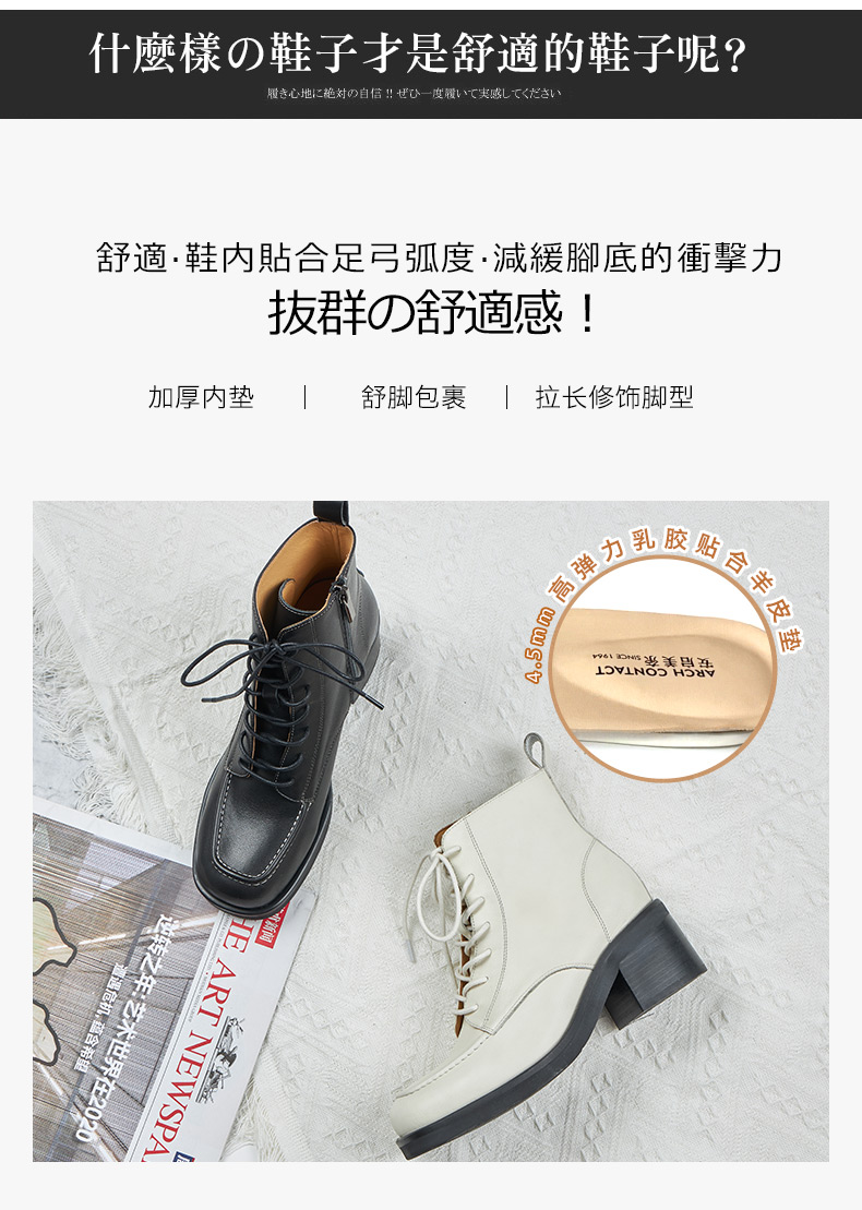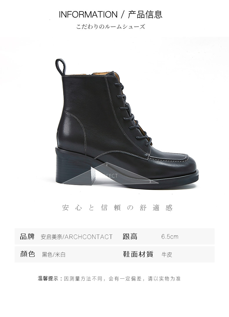 【活动价】ARCHCONTACT安启美奈粗跟系带真皮中筒马丁靴52181