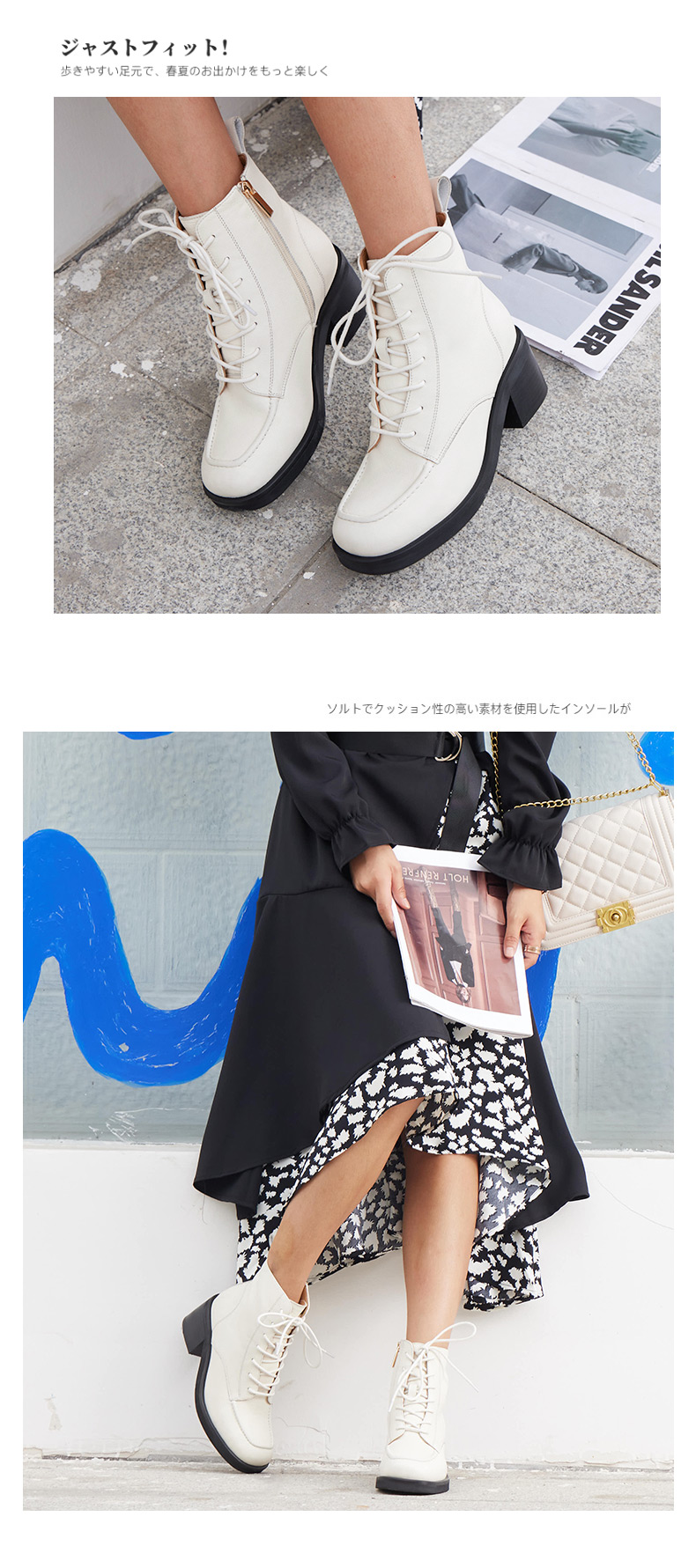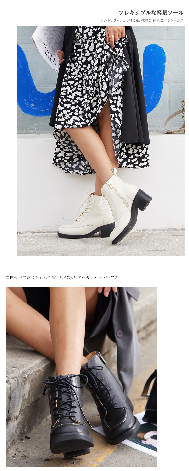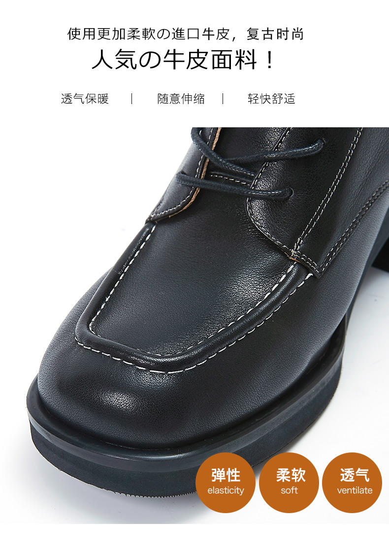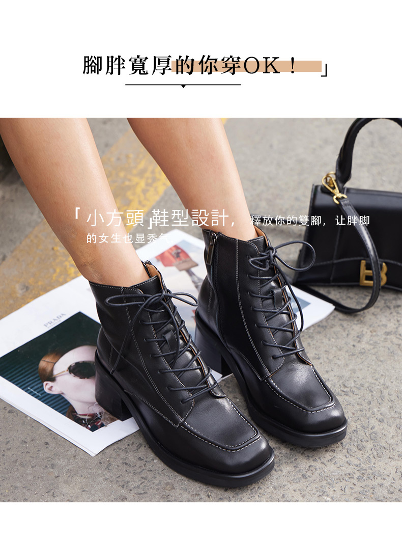 【活动价】ARCHCONTACT安启美奈粗跟系带真皮中筒马丁靴52181
