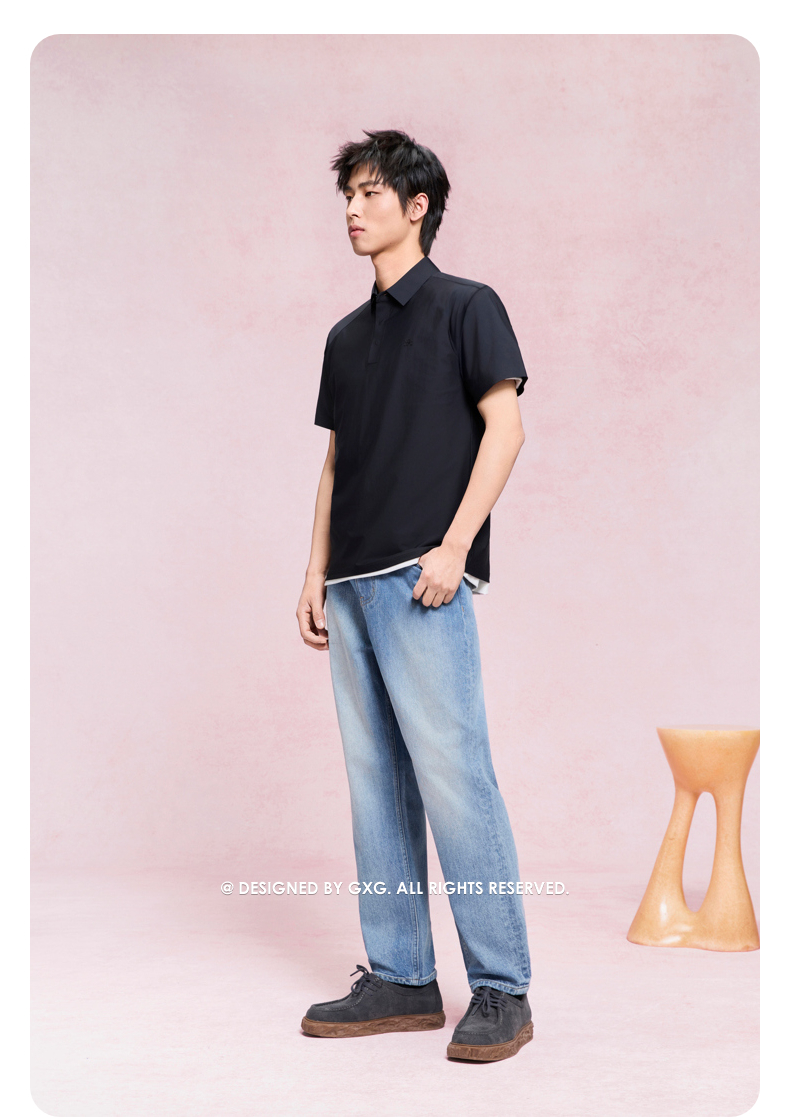 GXG男装 压胶简约polo衫男士上衣简约翻领短袖T恤 25夏季热卖