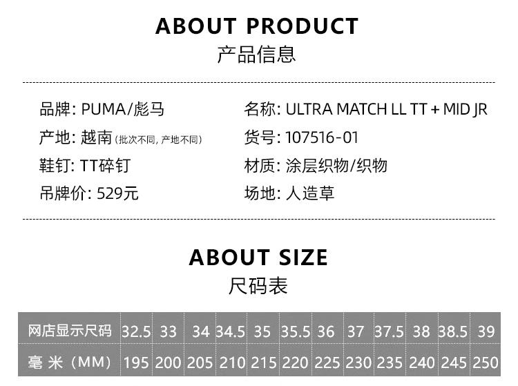 SFS彪马Puma正品ULTRA中端碎钉TF儿童人草无鞋带足球鞋107516-01