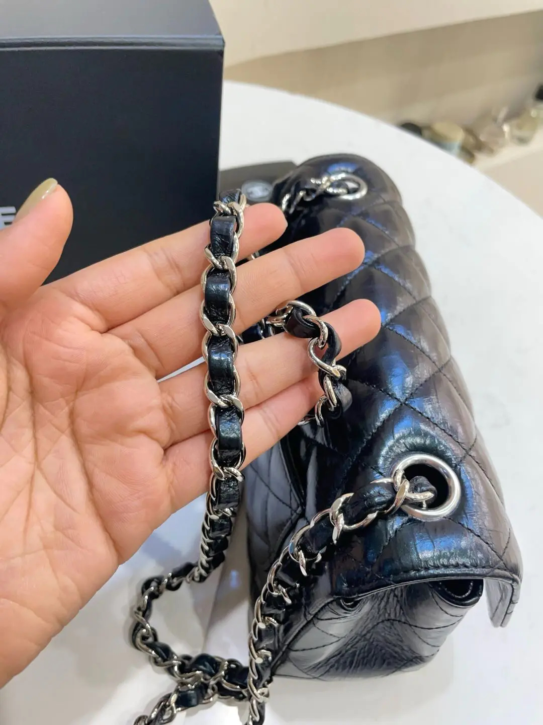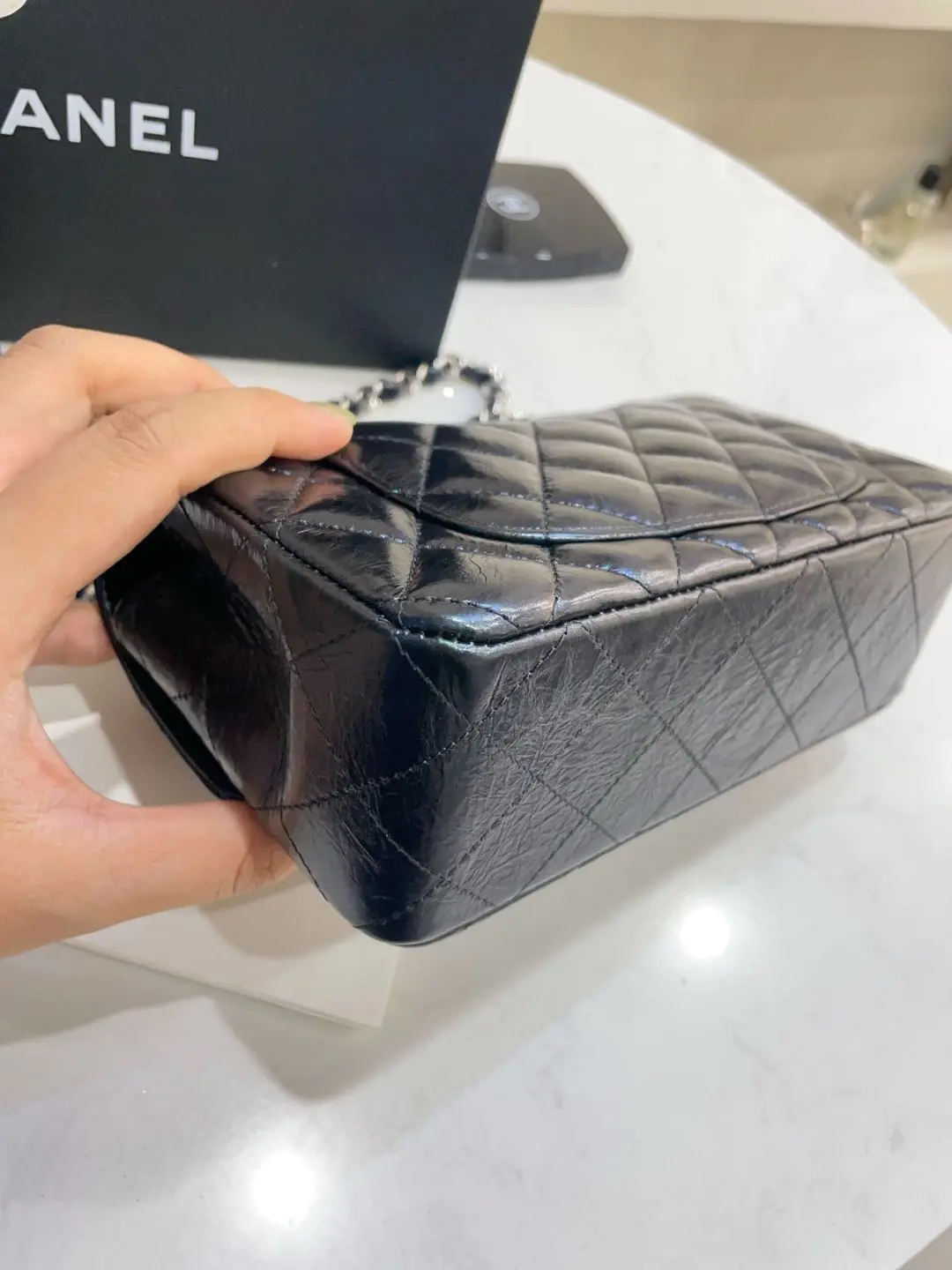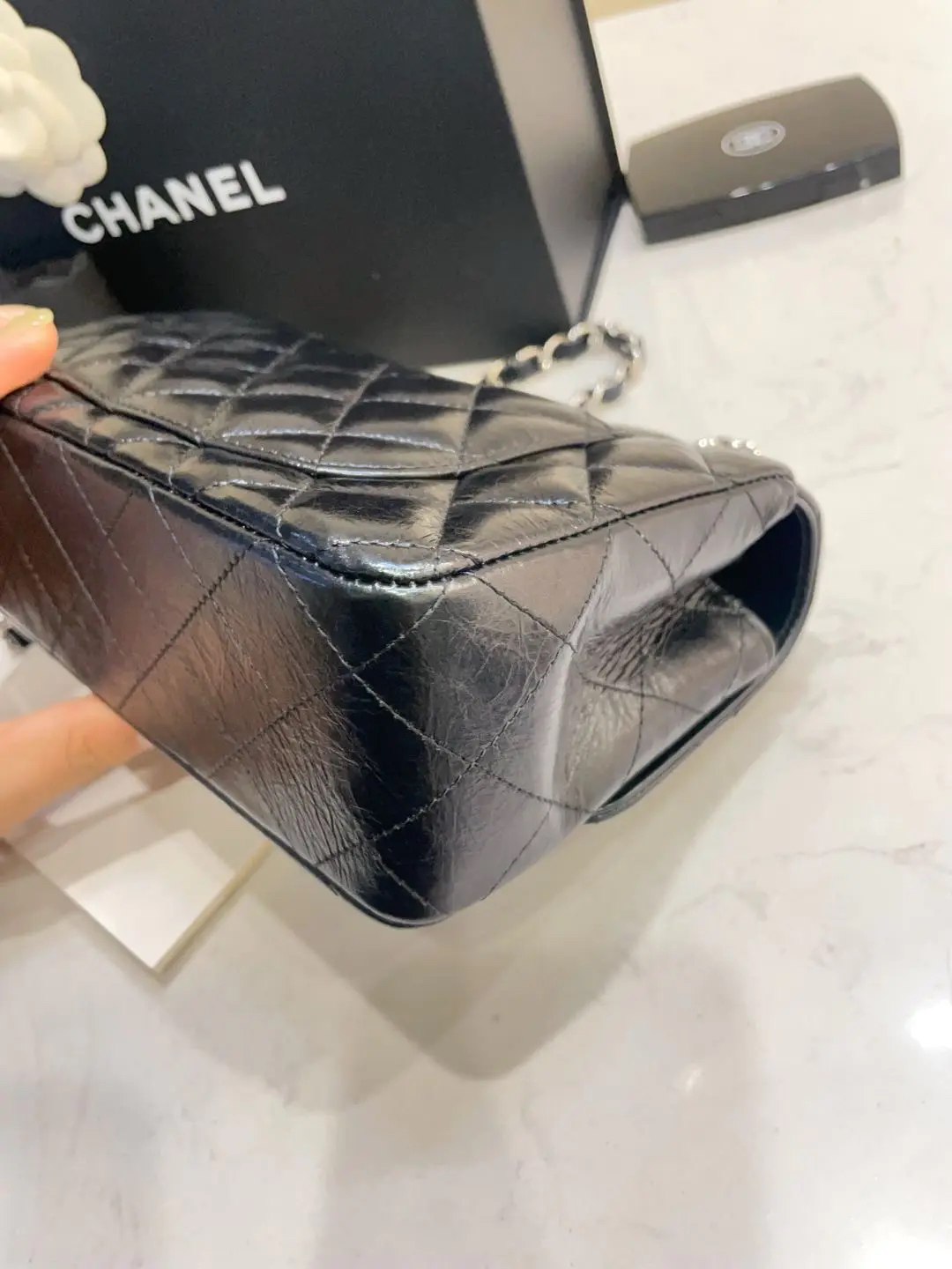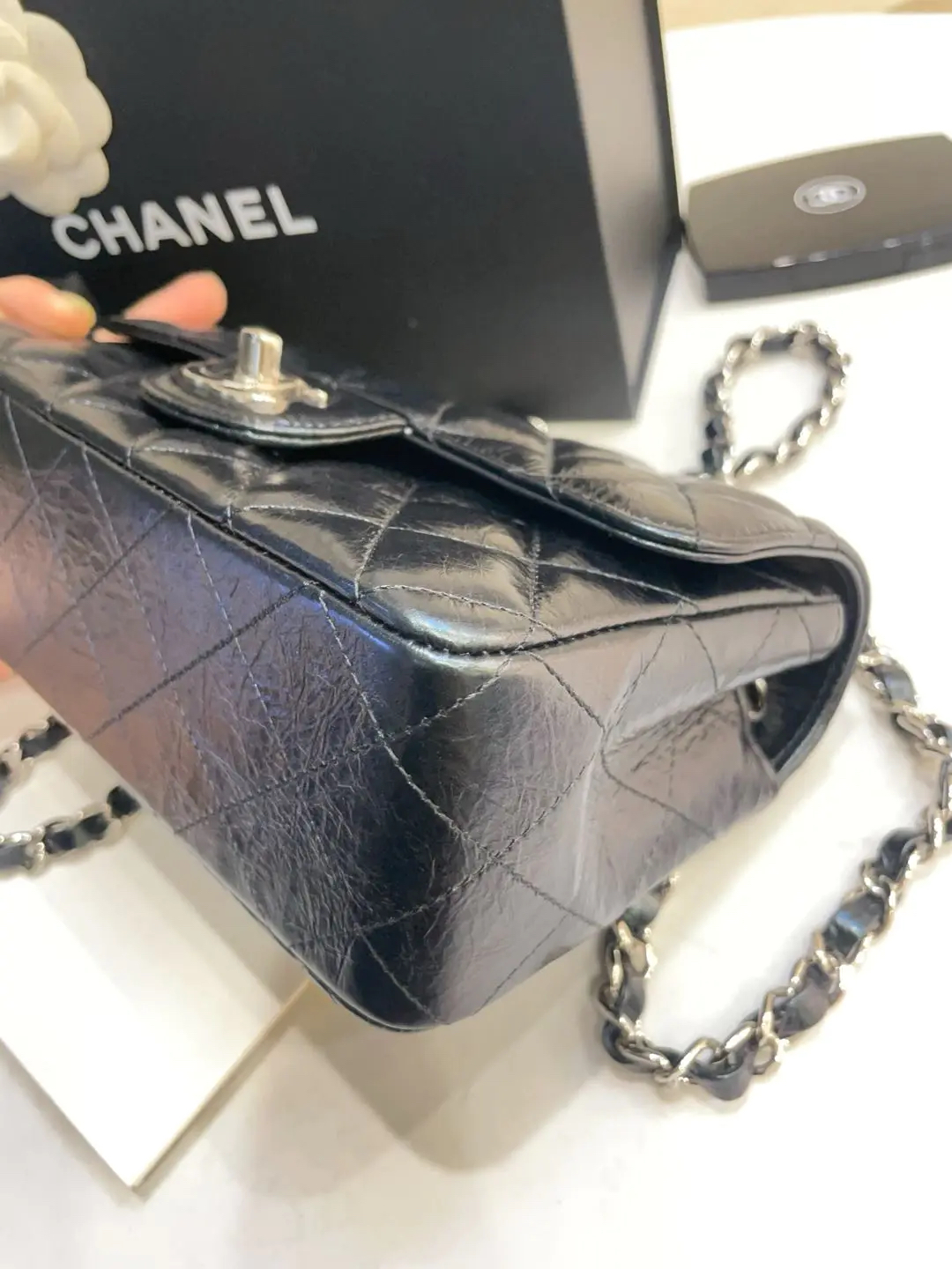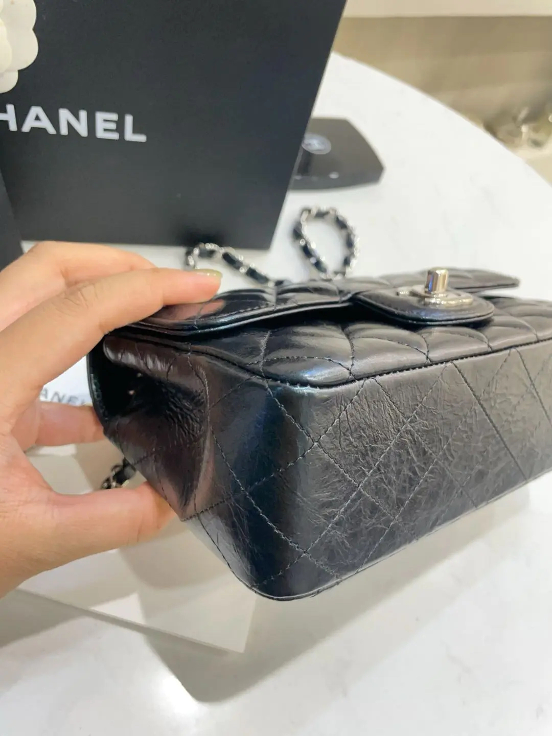 【商品详情】正品二手 chanel CF 大mini 油蜡牛皮 菱格 芯片款 🐱99新 21x12 新钢标 配件:说明书 防尘袋 盒子。低调又高级容量也在线👏🏻