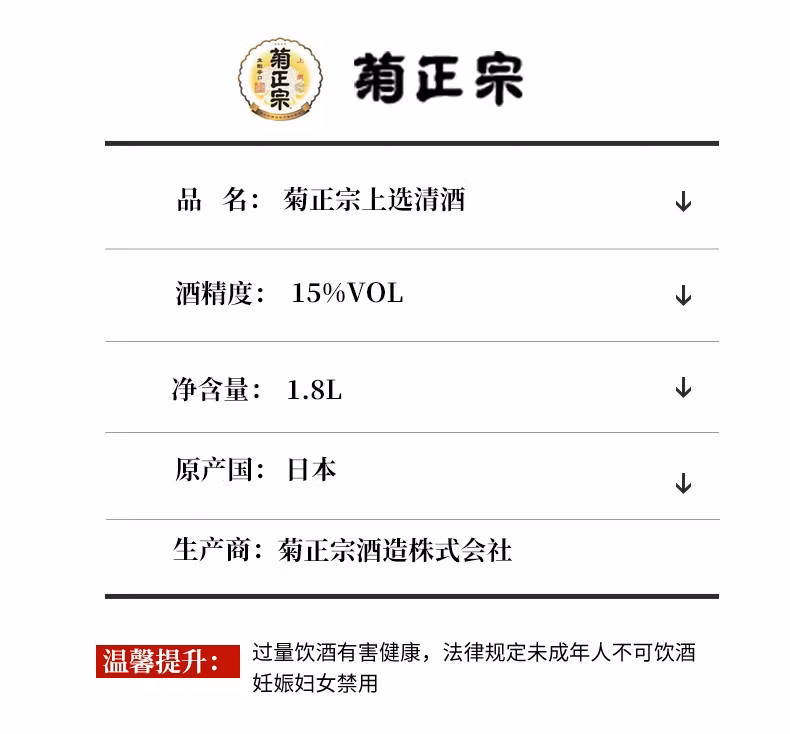 日本菊正宗 上选清酒 1800ml*1瓶