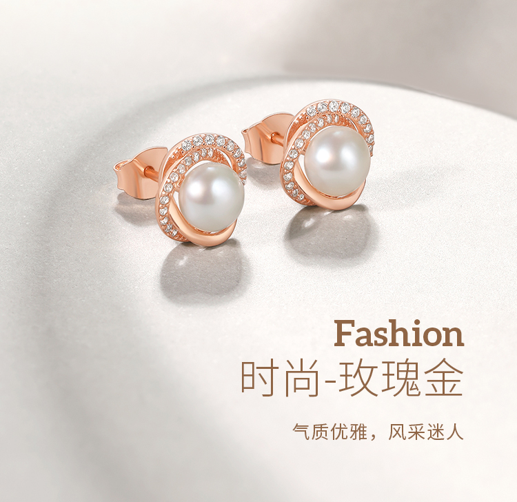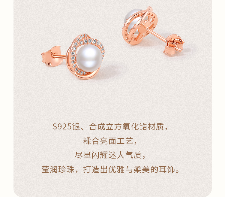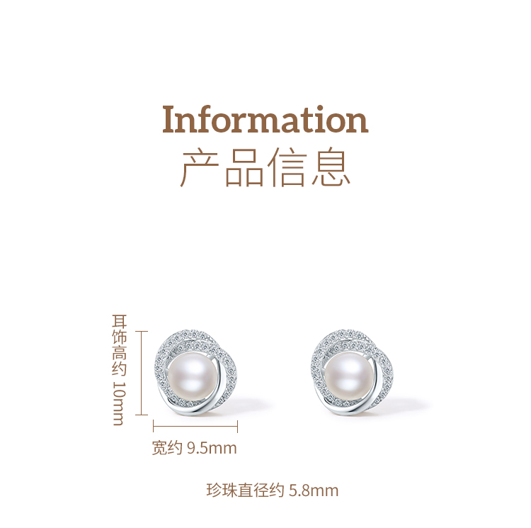 周六福白月光淡水珍珠耳饰女耳畔花开优雅S925银送女友送女友礼物