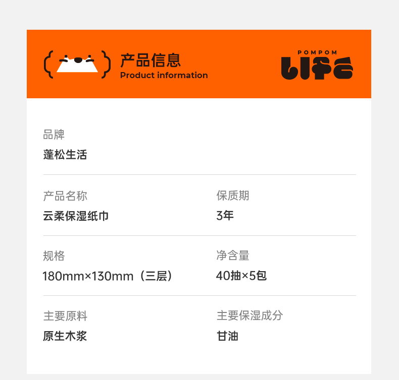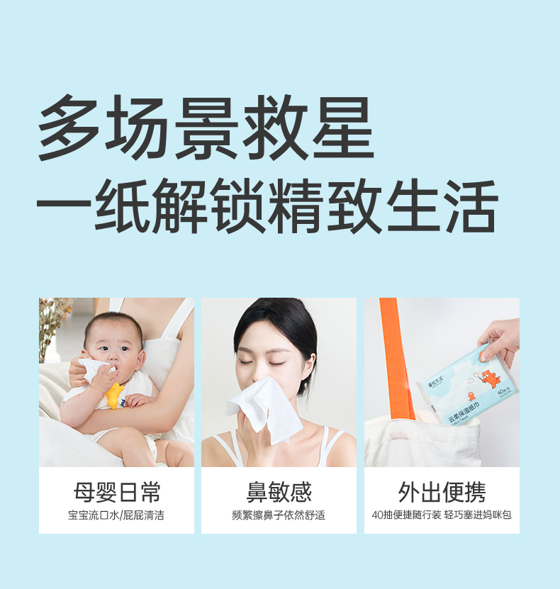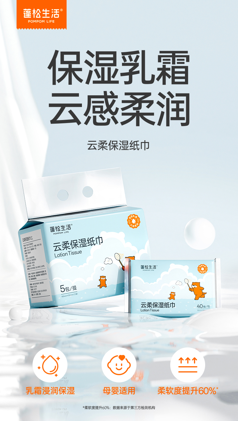 蓬松生活 云柔保湿纸巾 乳霜保湿柔润舒适 40抽/包