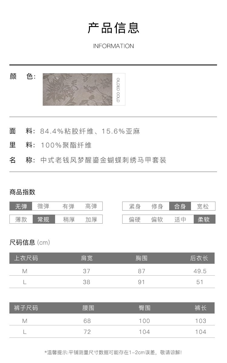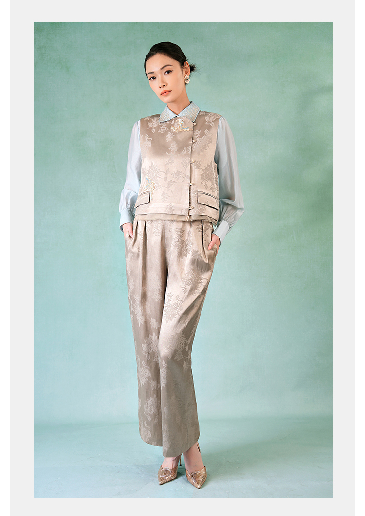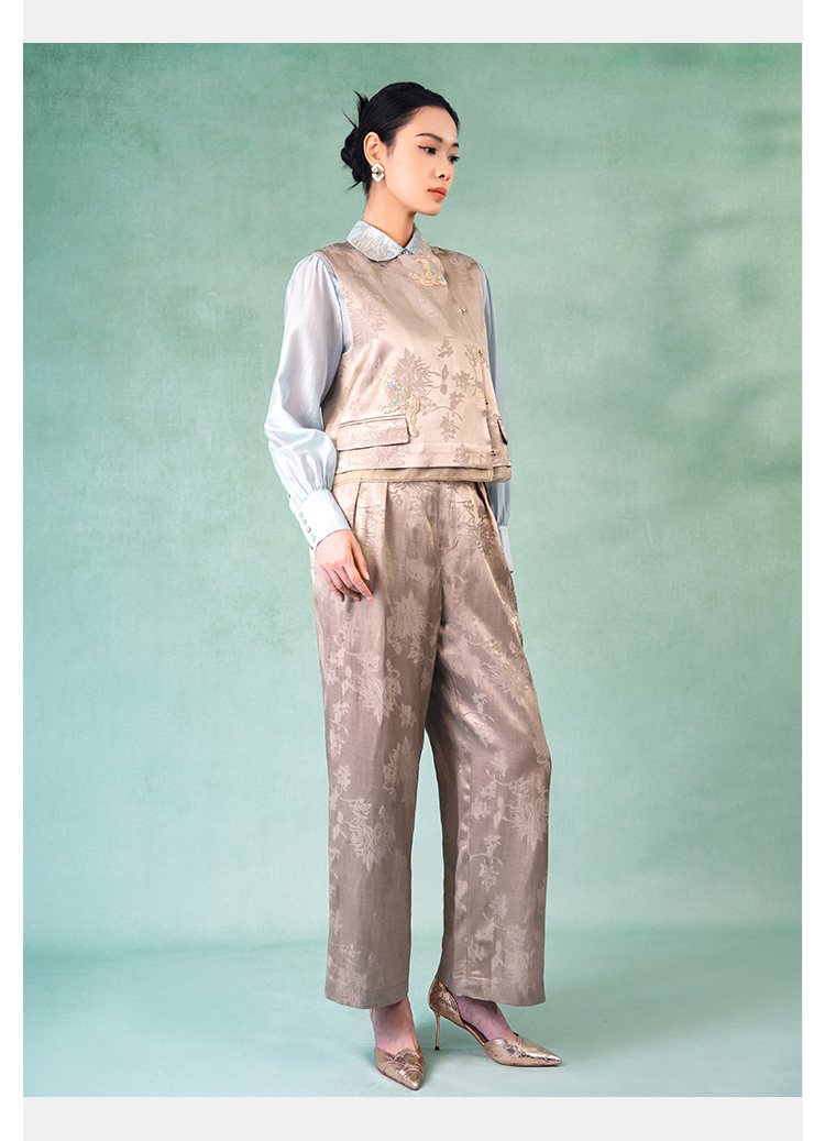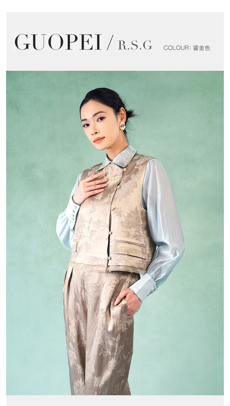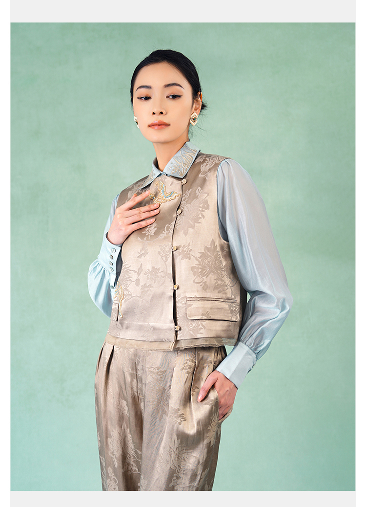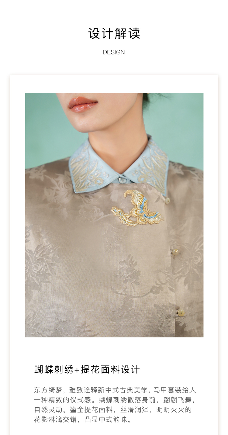 郭培成衣品牌精品系列中式老钱风梦醒鎏金蝴蝶刺绣马甲套装
