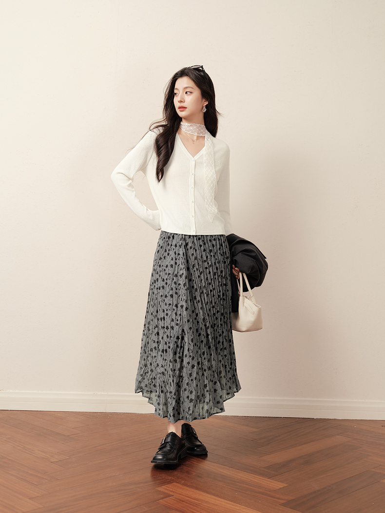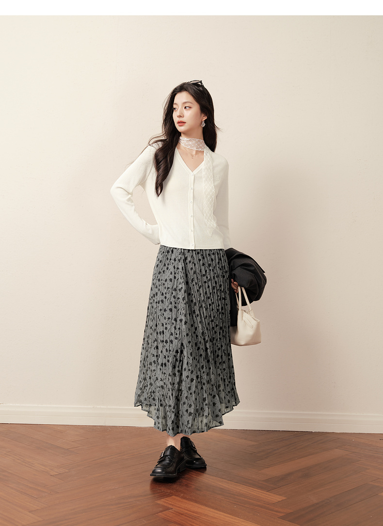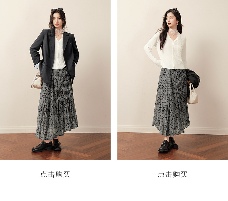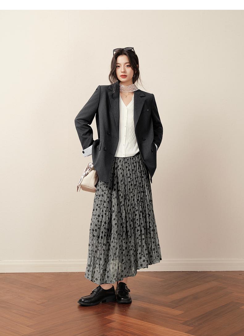 【商场同款】诗凡黎浪漫碎花百褶裙2025秋新款度假长裙3G8241491