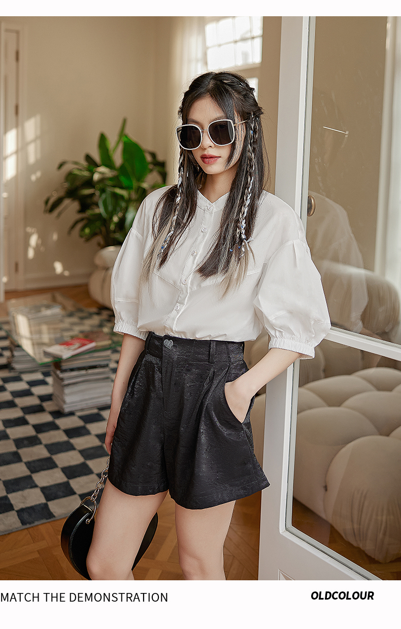 oldcolour2022春夏新品简约气质休闲小A型百搭阔腿小短裤女