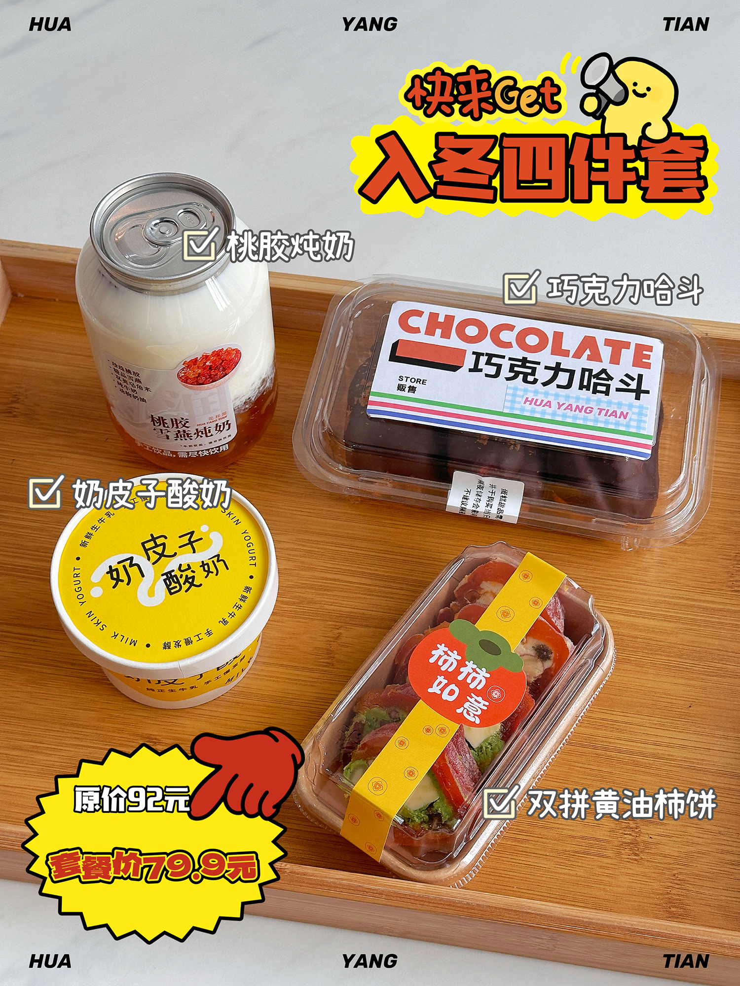 套餐二(桃胶炖奶、巧克力哈斗、奶皮子酸奶、双拼黄油柿饼)