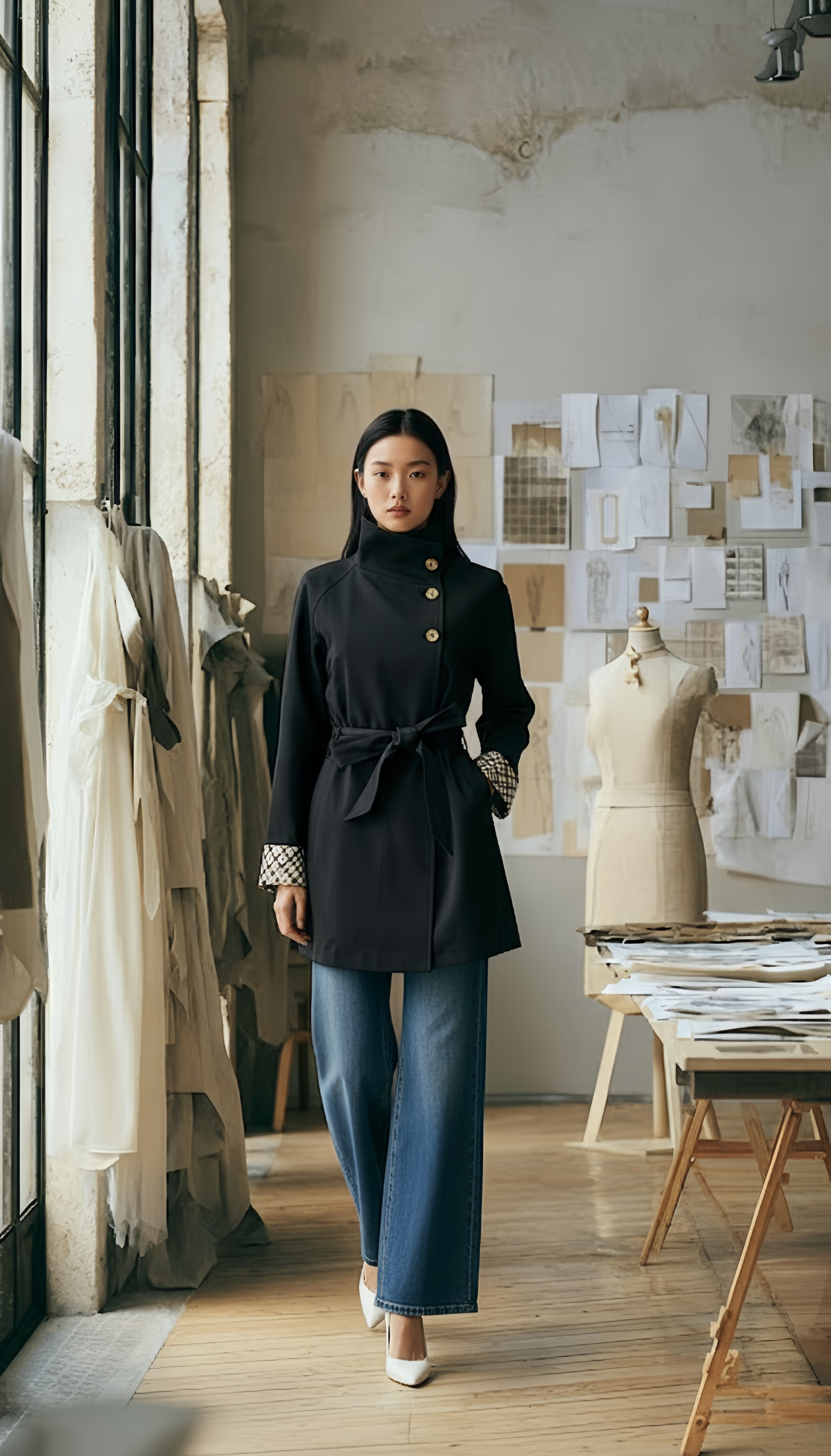 商品:HN 复古通勤三粒扣立领休闲短风衣(附腰带)