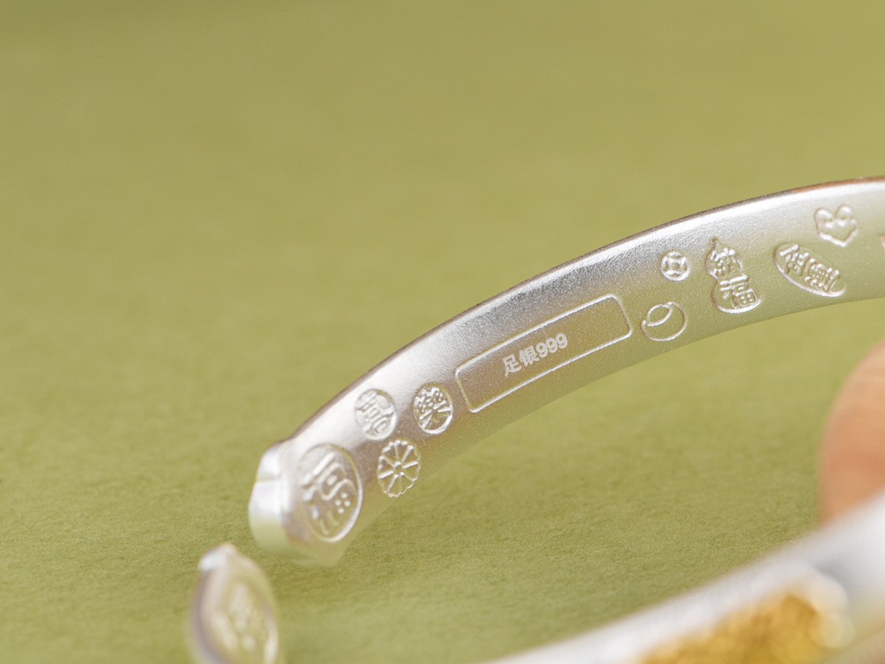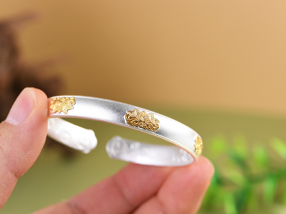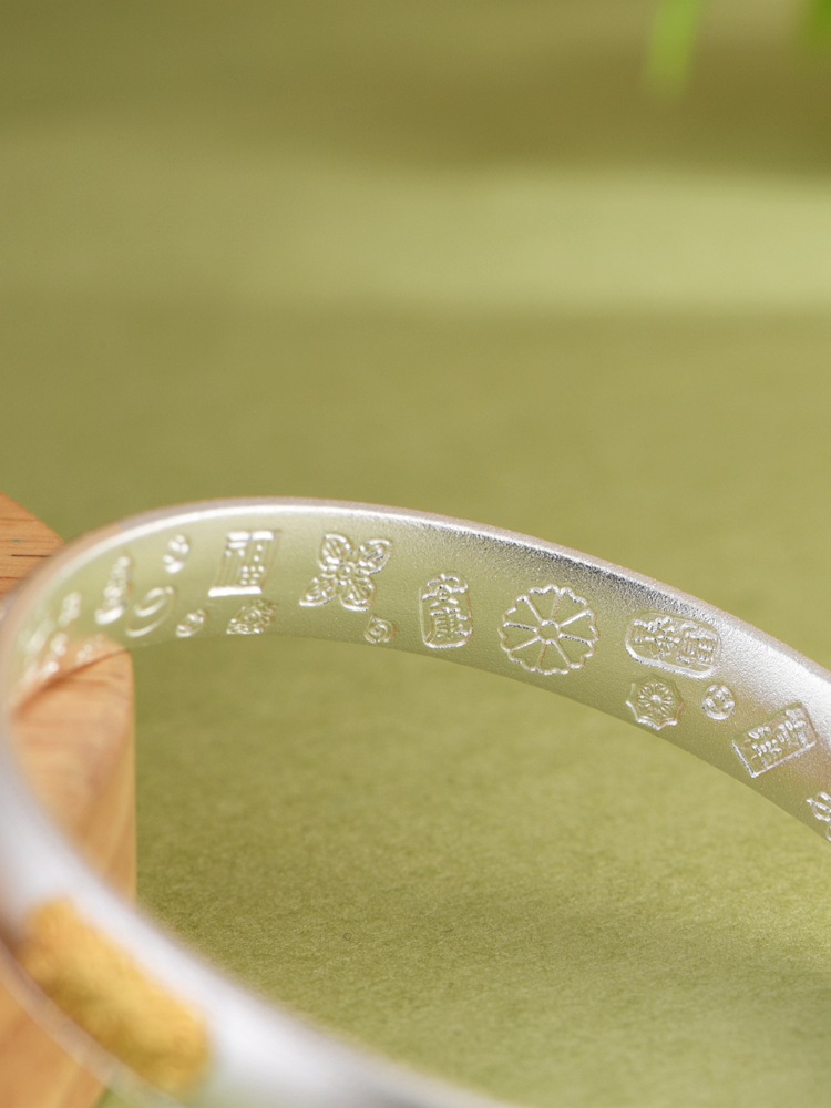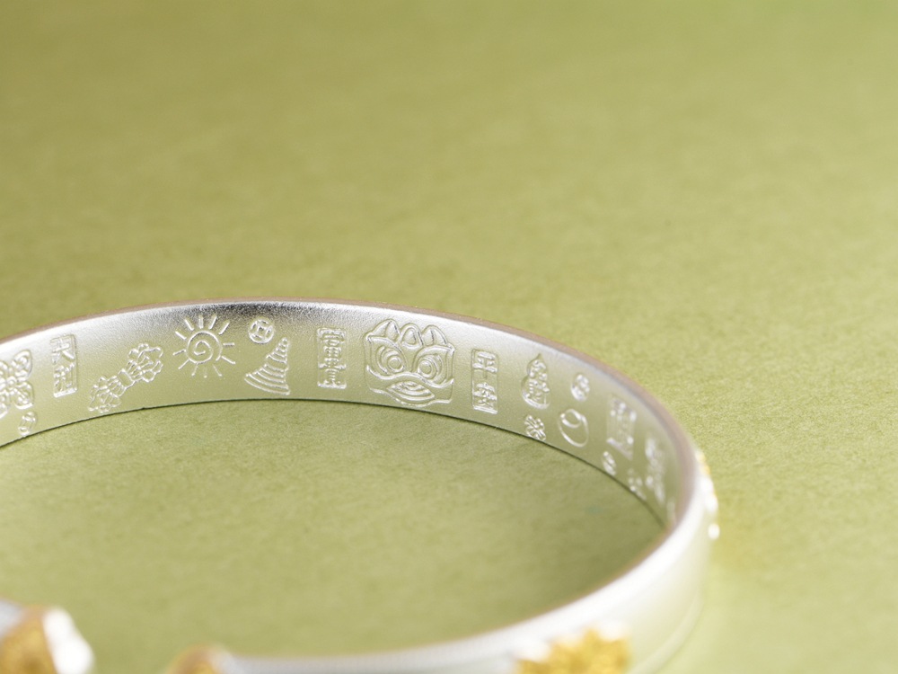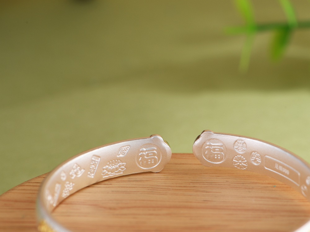 【莲莲纳金】足银磨砂镀金莲花如意头元宝醒狮吉言福字葫芦手镯【SCH-SZ0025-1-233】