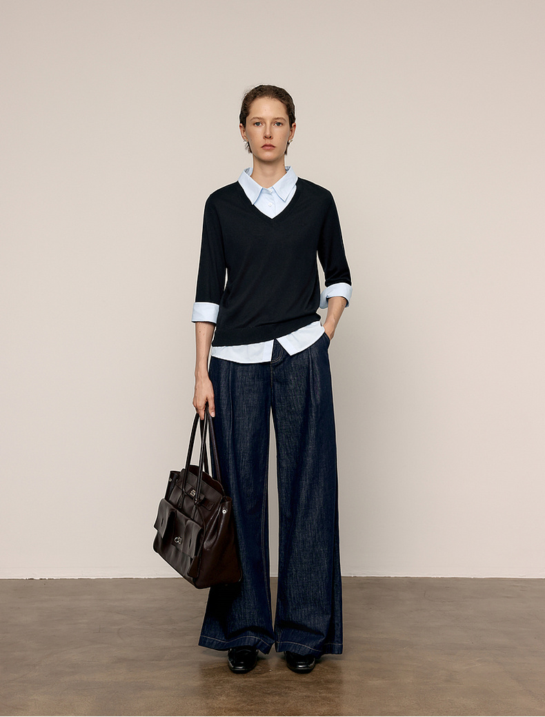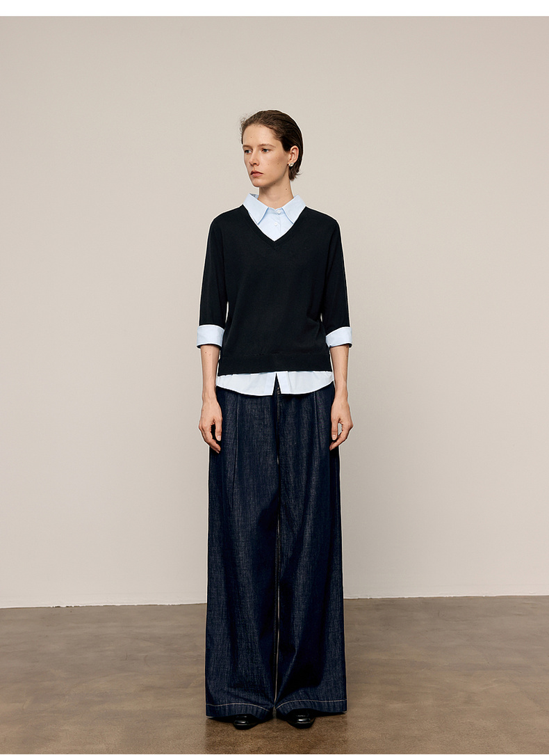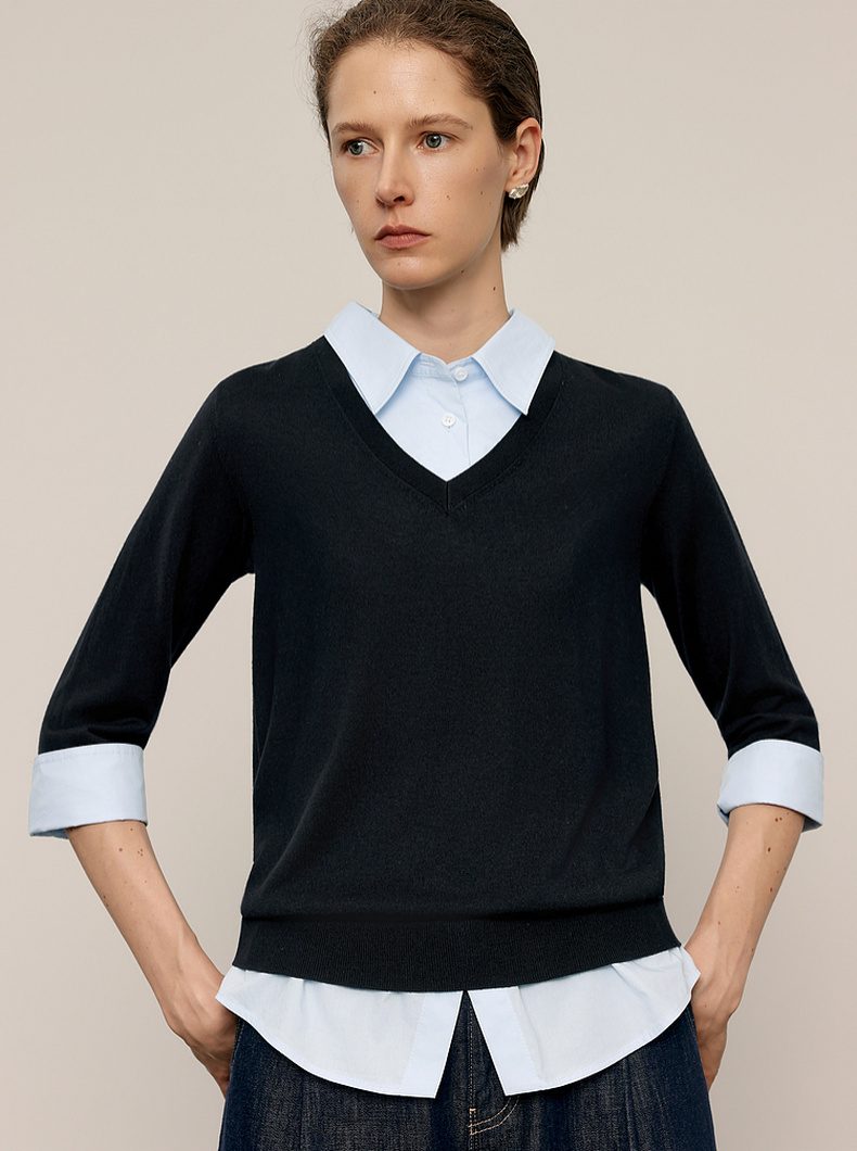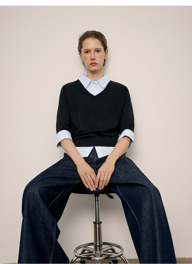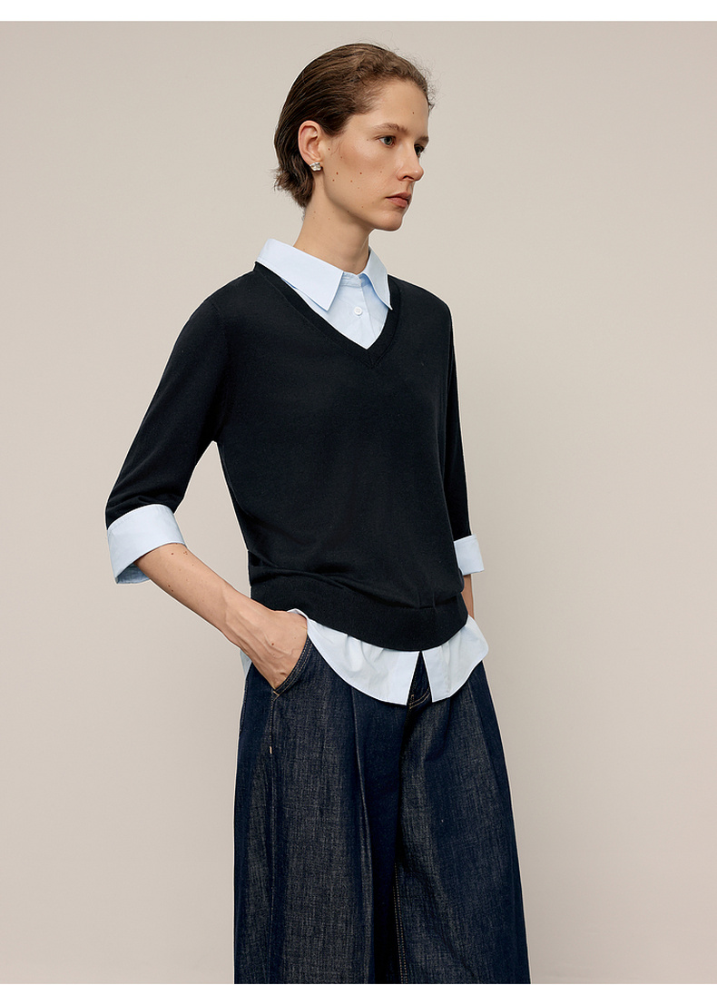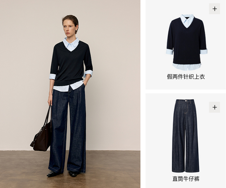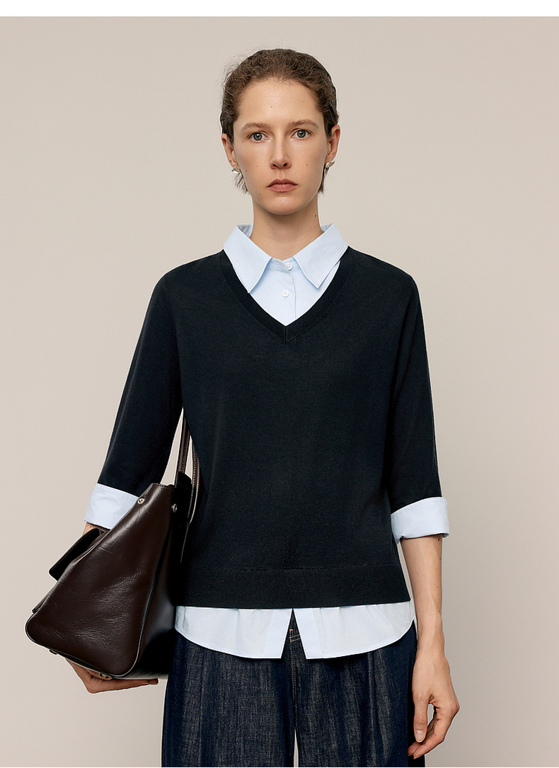 【商场同款】麦檬春秋针梭拼毛衣5G7232501