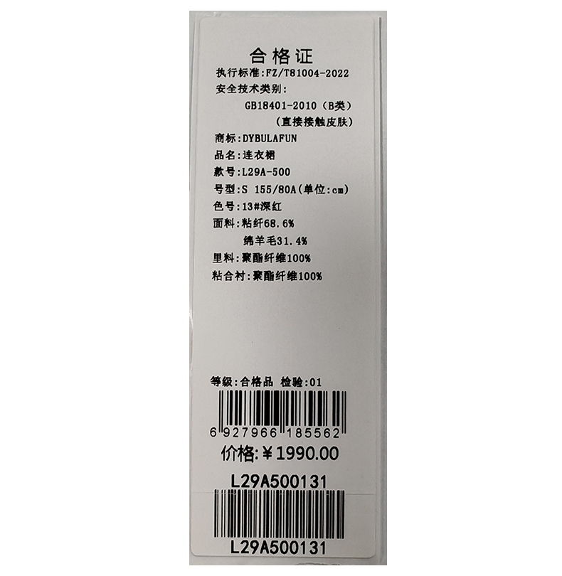 戴布拉芬连衣裙L29A500