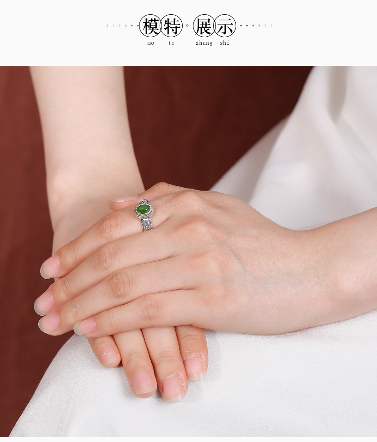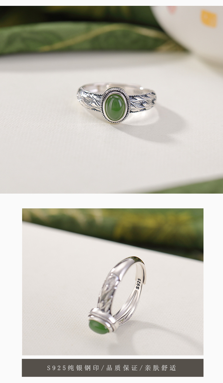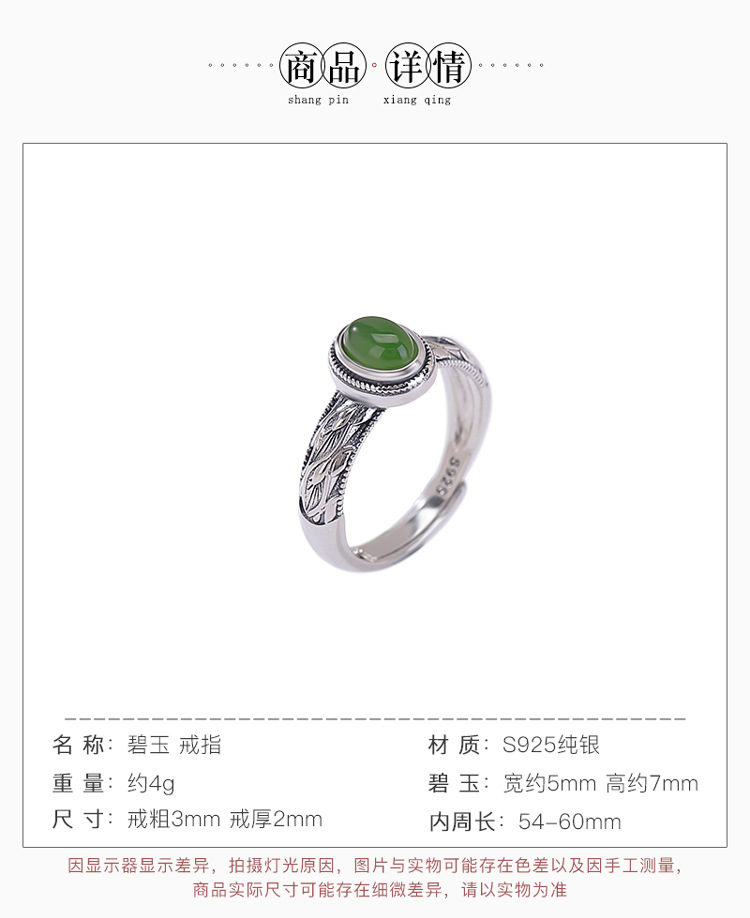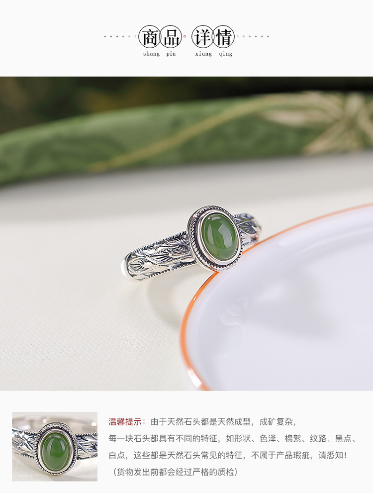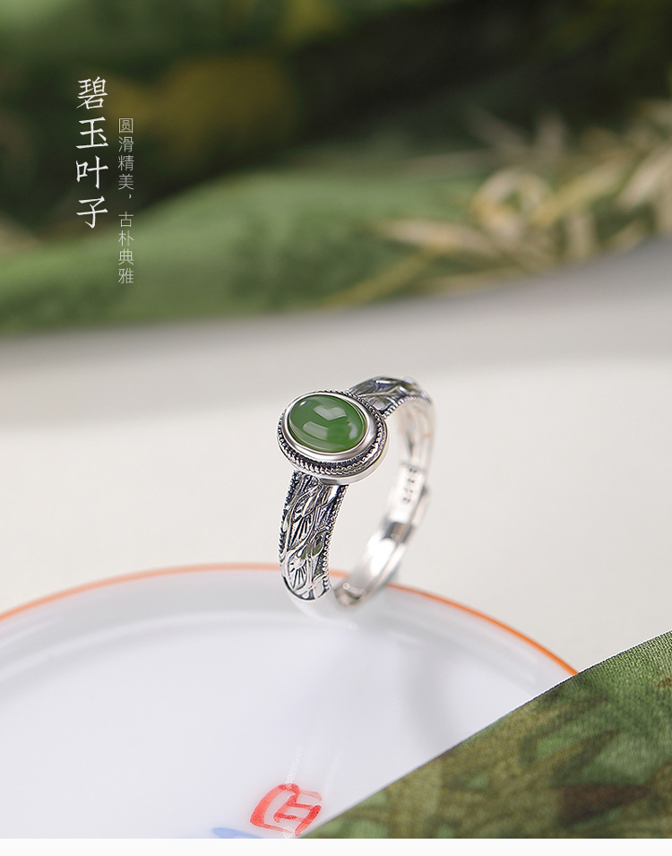 【芳华之遇】天然和田玉S925纯银碧玉叶子蛋面戒指【CW-JZ07362】