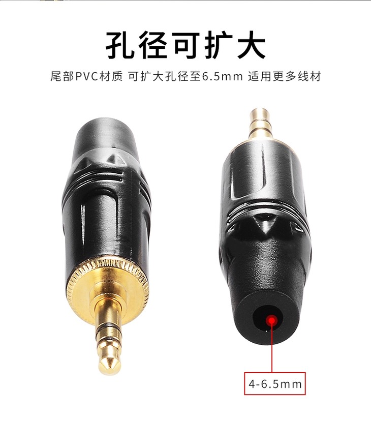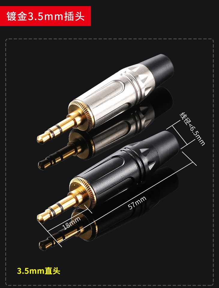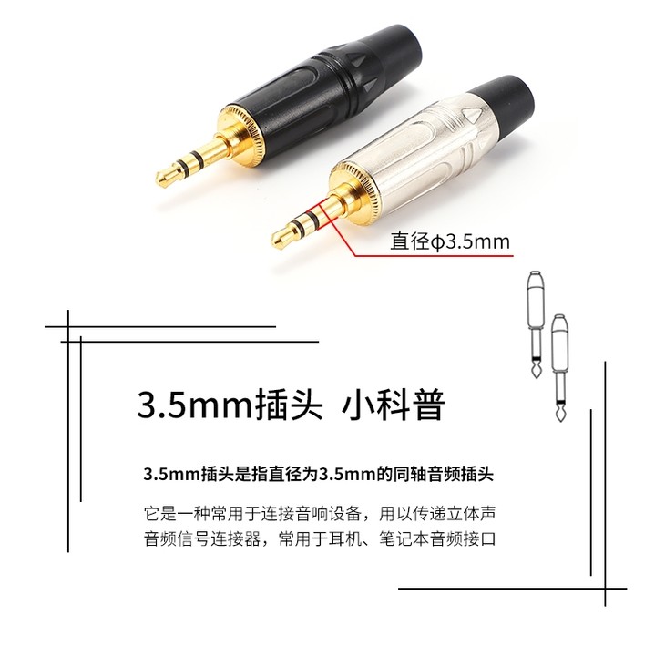 *高品质黑金3.5mm插头,适用于演出租赁、音响工程、发烧友DIY、手机电脑等耳机口设备音频信号传输