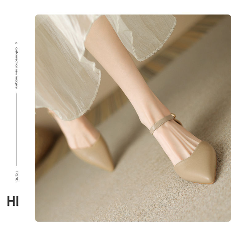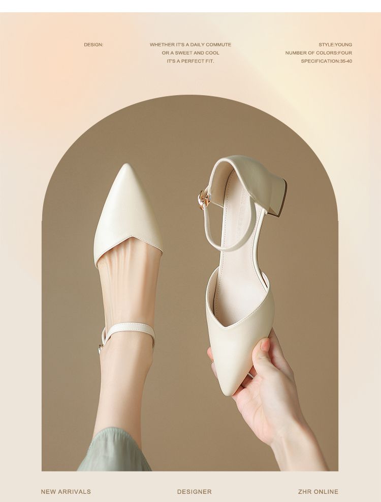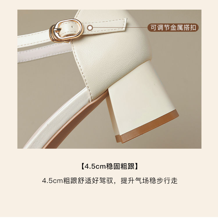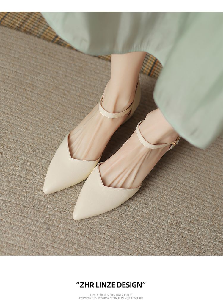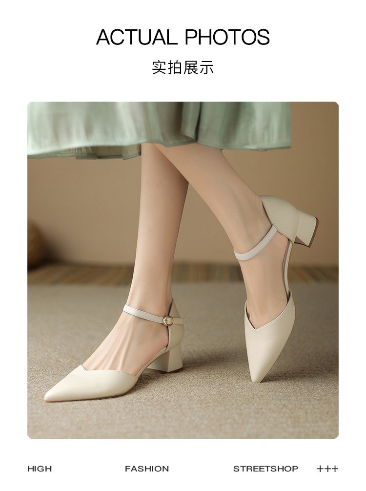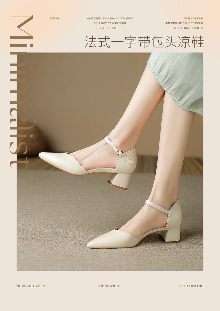 ZHR则则尖头气质凉鞋2024新款百搭时尚包头凉鞋粗跟一字法式女鞋