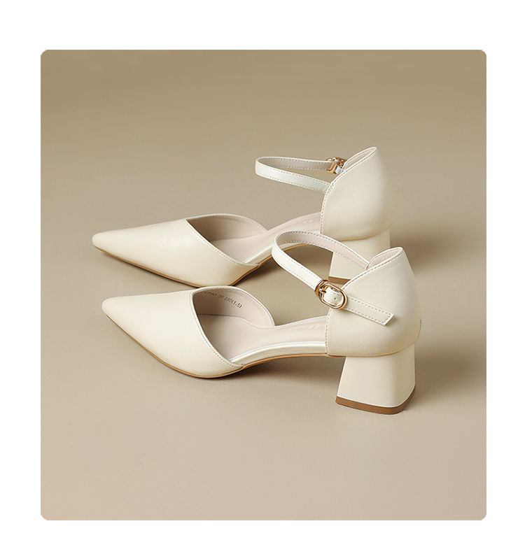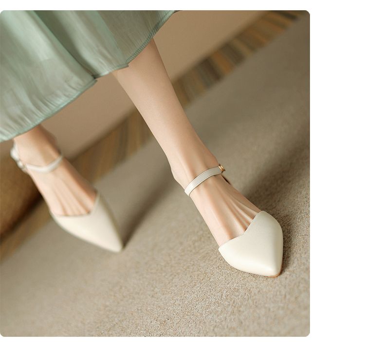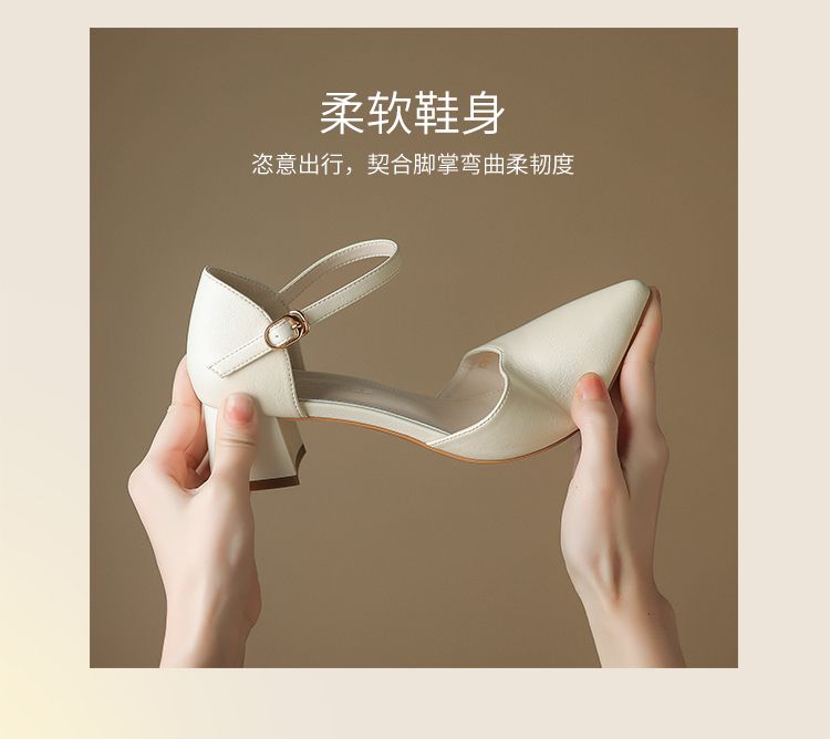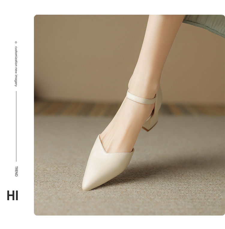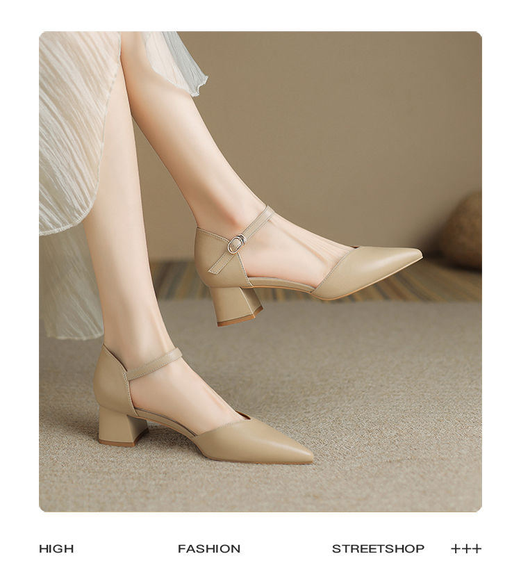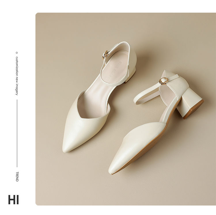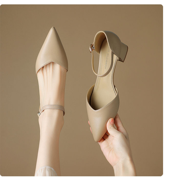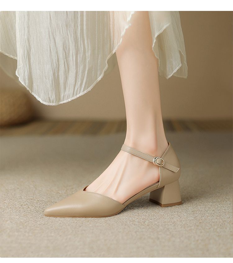 ZHR则则尖头气质凉鞋2024新款百搭时尚包头凉鞋粗跟一字法式女鞋