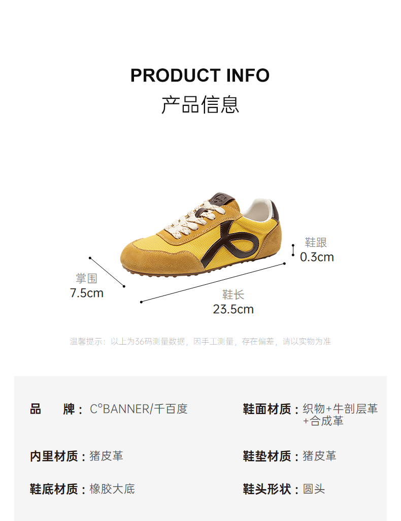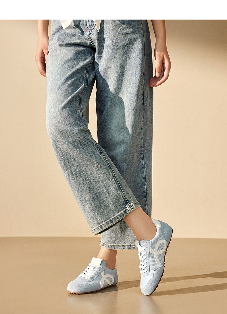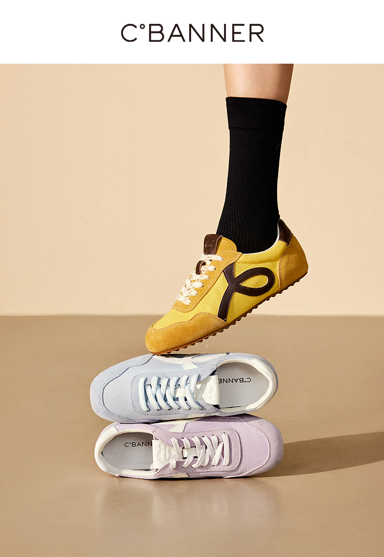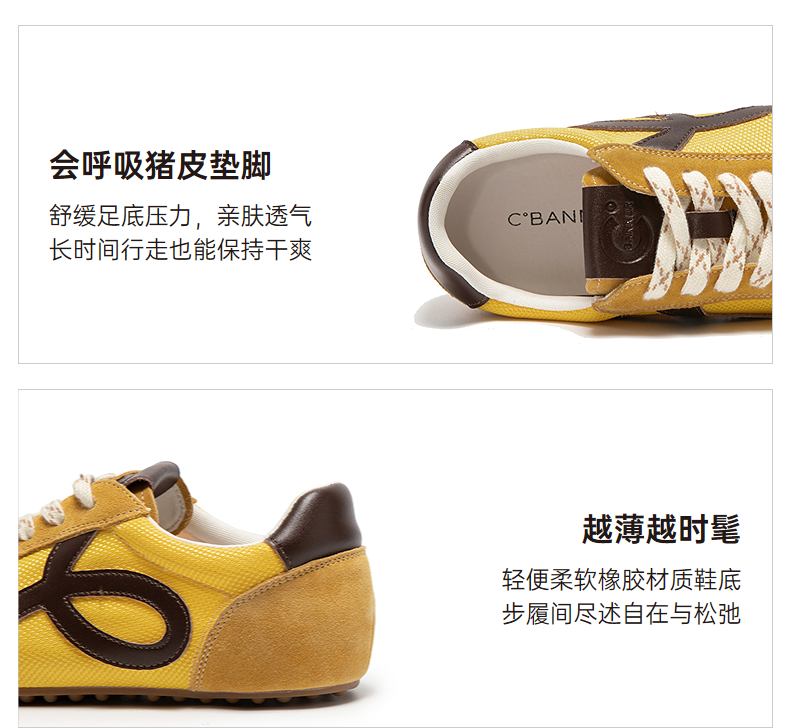 千百度薄底德训鞋女款复古多巴胺透气时尚运动休闲鞋A25457801